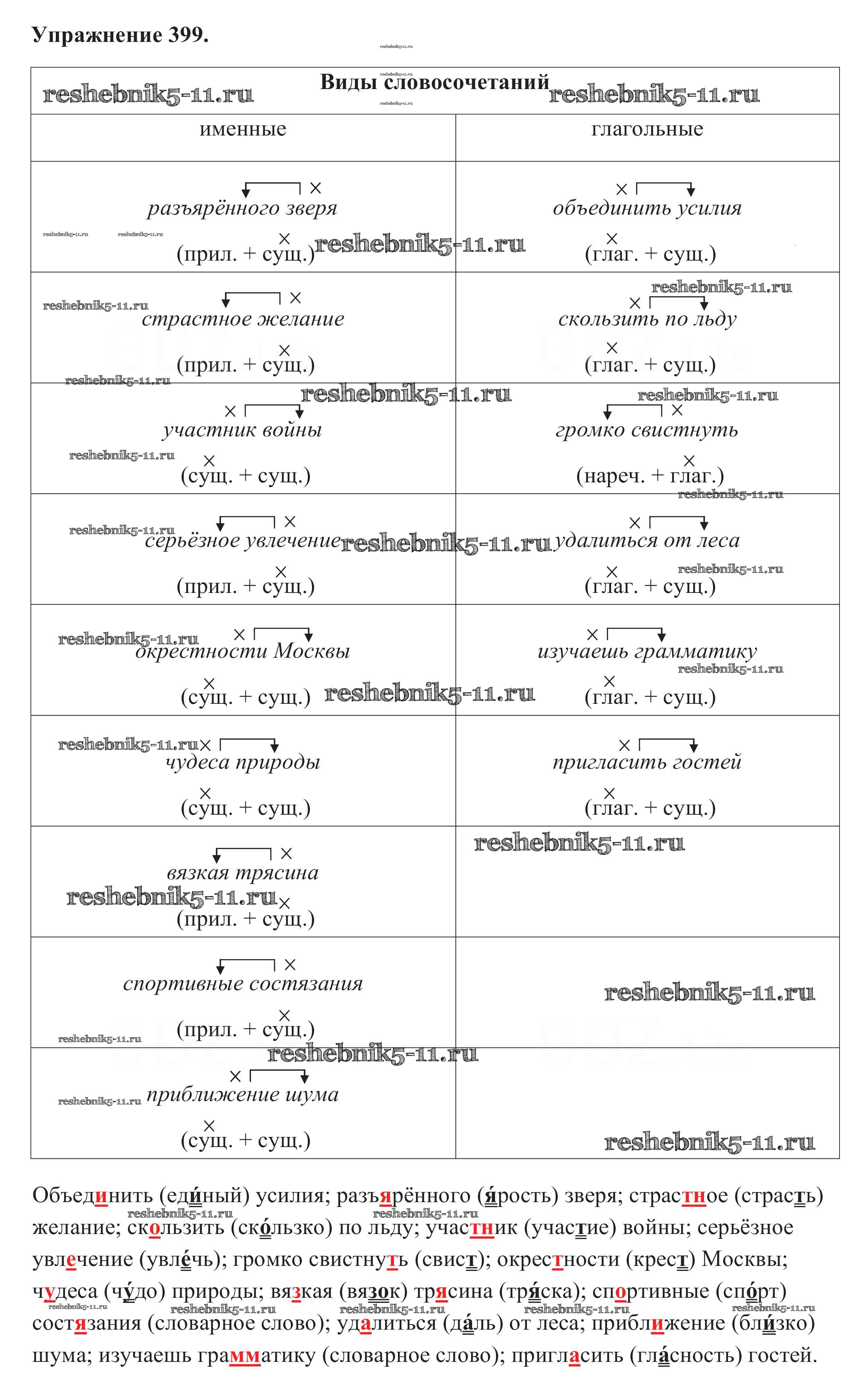 Готовая домашняя работа с ответами по Русскому языку за 5 класс Разумовская, Львова, Капинос, Львов, Богданова, Тронина, Сергеева Учебник Дрофа 2014 ФГОС - Упражнения 399