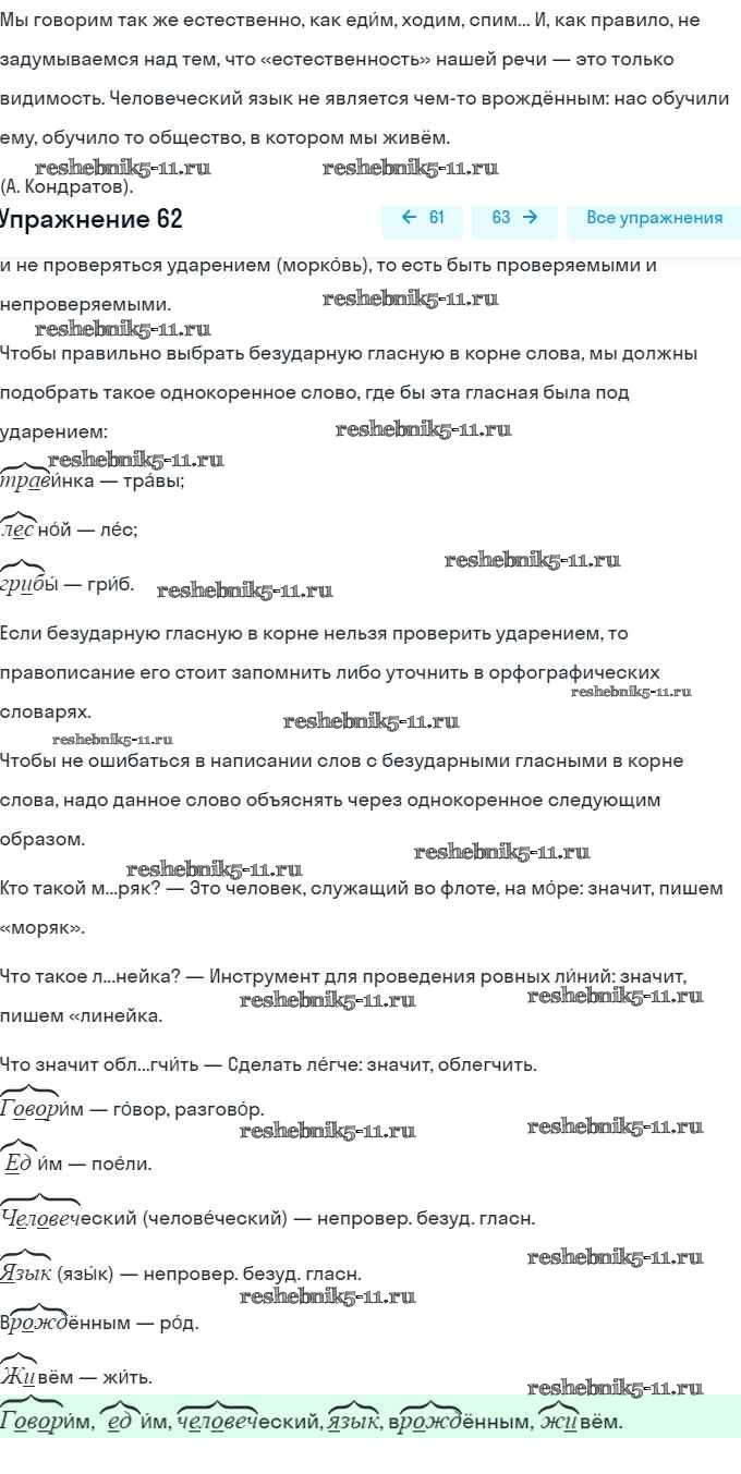 Решебник №1 к учебнику 2014 / упражнение / 62