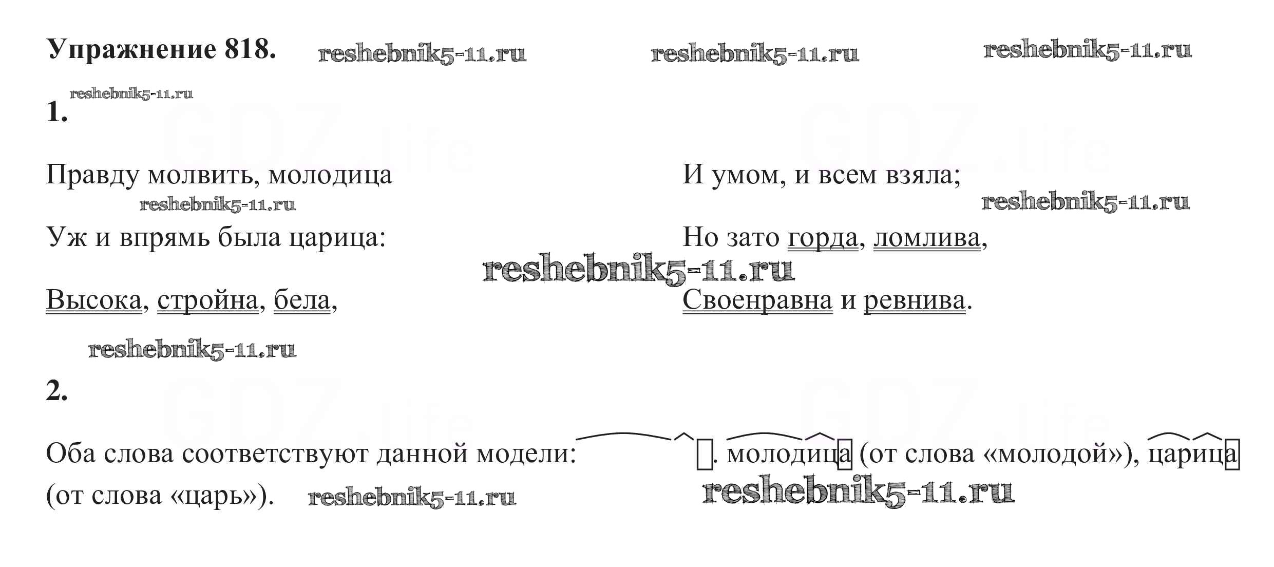 Готовая домашняя работа с ответами по Русскому языку за 5 класс Разумовская, Львова, Капинос, Львов, Богданова, Тронина, Сергеева Учебник Дрофа 2014 ФГОС - Упражнения 818