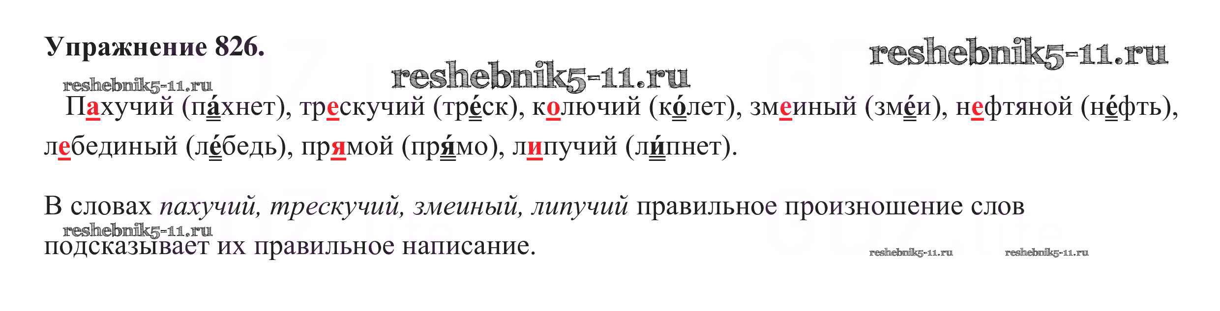 Готовая домашняя работа с ответами по Русскому языку за 5 класс Разумовская, Львова, Капинос, Львов, Богданова, Тронина, Сергеева Учебник Дрофа 2014 ФГОС - Упражнения 826