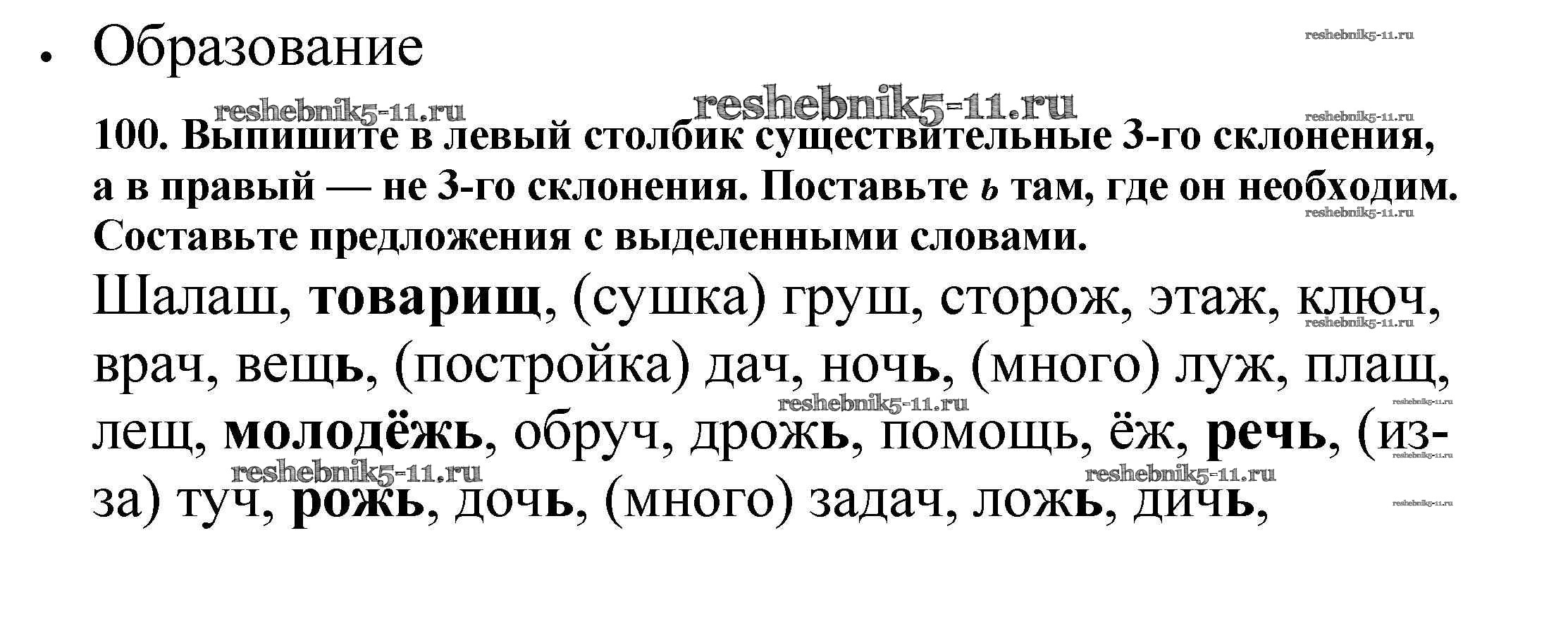 Русский язык за 5 класс Баранов Учебник Просвещение часть 1. упражнение 100