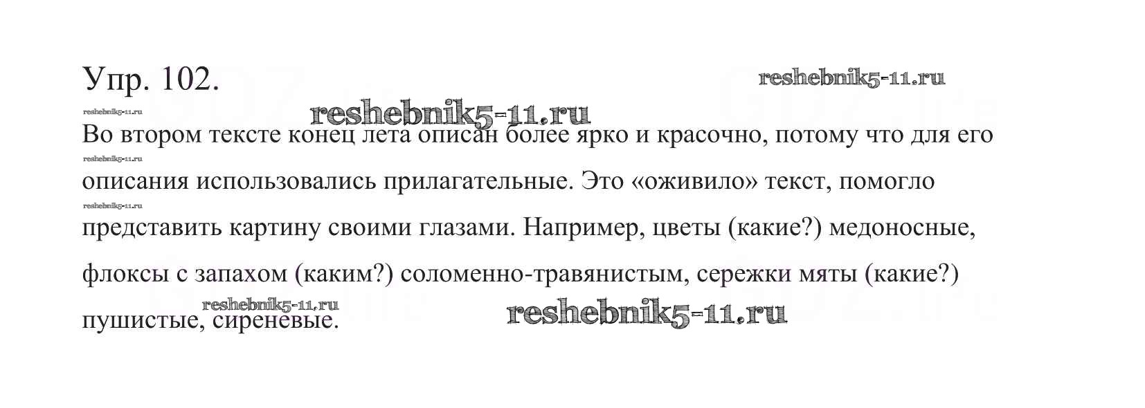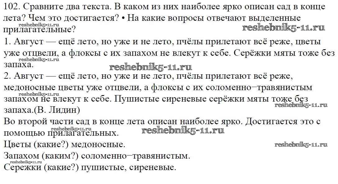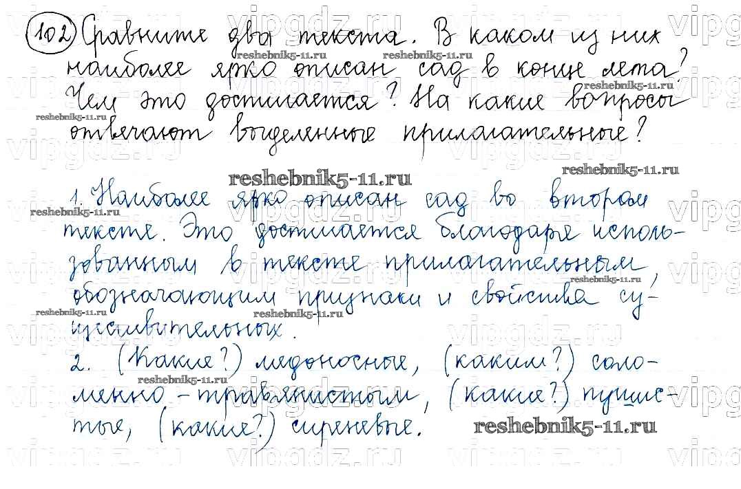 Готовая домашняя работа с ответами по Русскому языку за 5 класс Баранов, Ладыженская, Тростенцова, Кулибаба, Григорян Учебник Часть 1, 2 Просвещение 2016 ФГОС - Часть 1. Упражнения 102