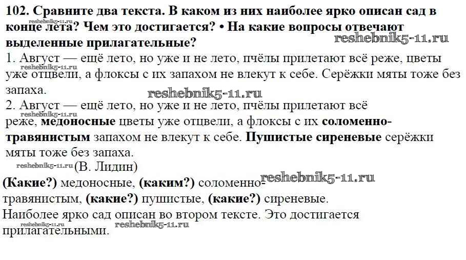Русский язык за 5 класс Баранов Учебник Просвещение часть 1. упражнение 102