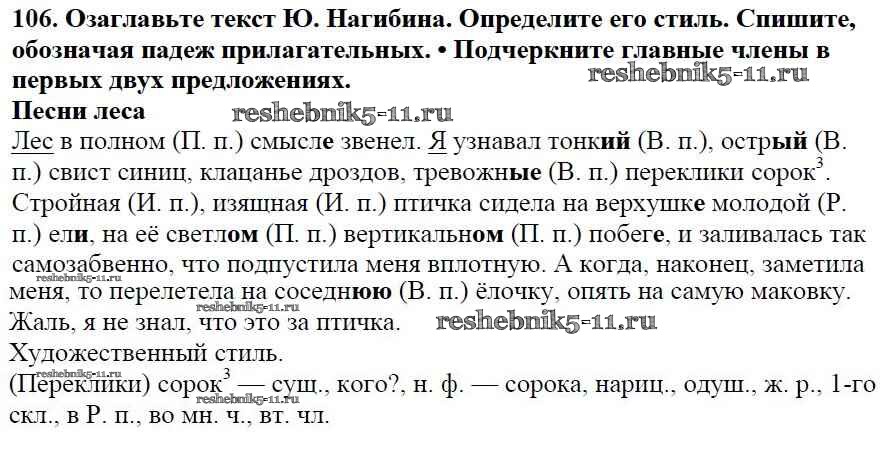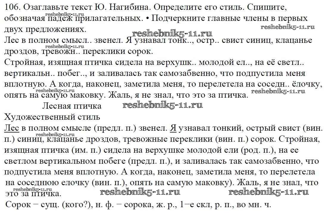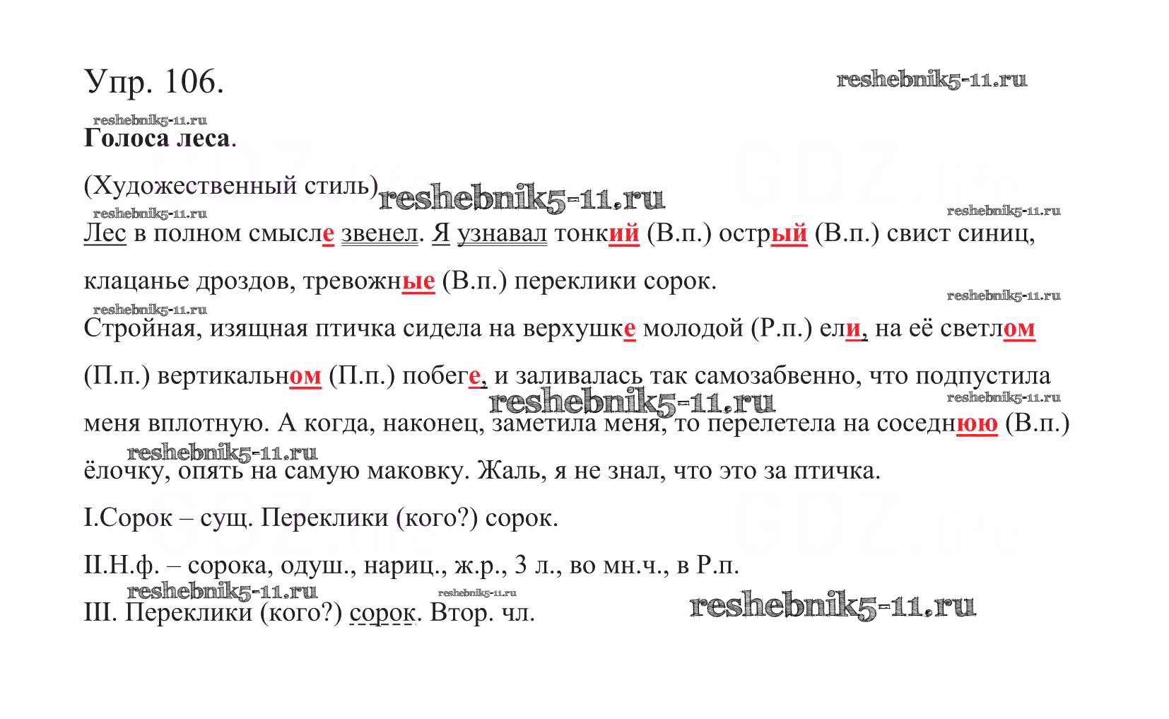 Русский язык за 5 класс Баранов Учебник Просвещение часть 1. упражнение 106