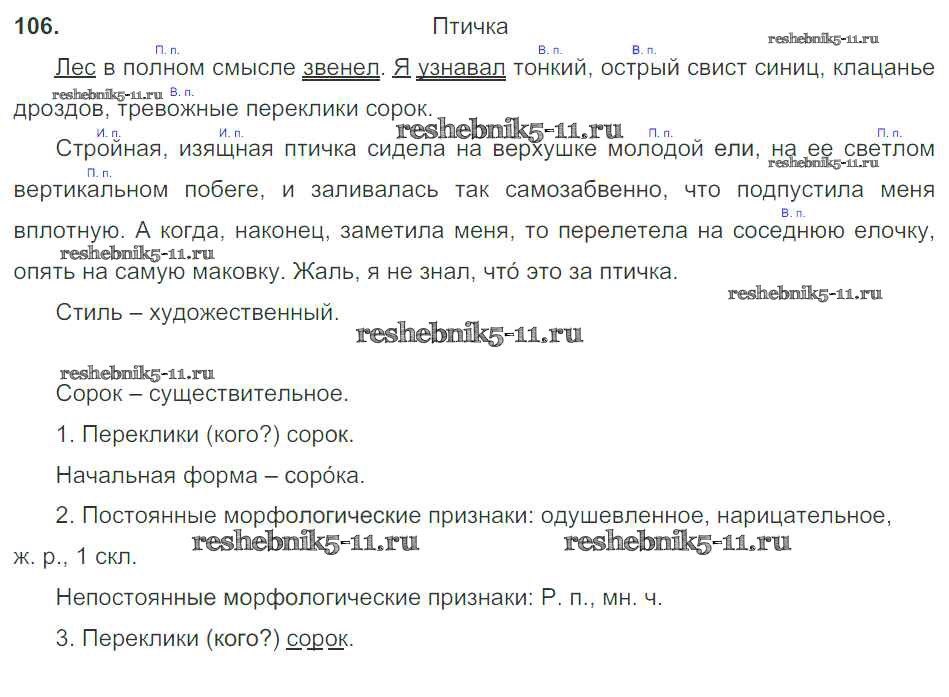 Готовая домашняя работа с ответами по Русскому языку за 5 класс Баранов, Ладыженская, Тростенцова, Кулибаба, Григорян Учебник Часть 1, 2 Просвещение 2016 ФГОС - Часть 1. Упражнения 106
