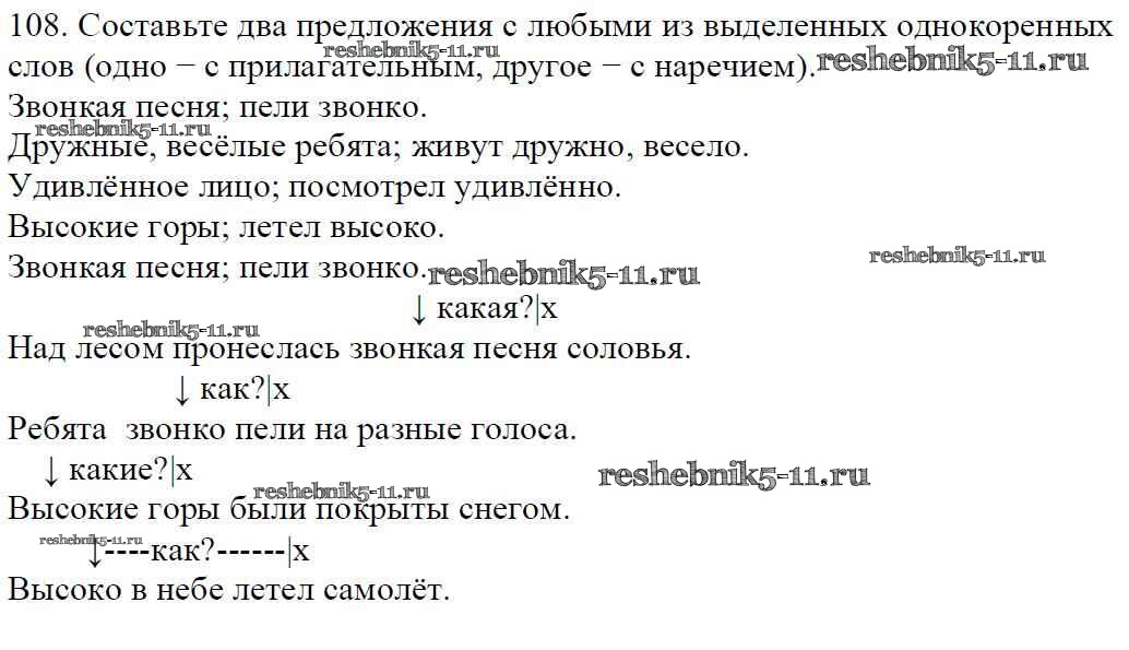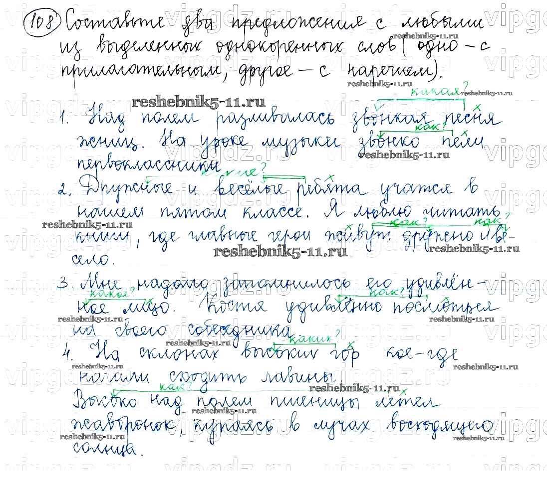 Готовая домашняя работа с ответами по Русскому языку за 5 класс Баранов, Ладыженская, Тростенцова, Кулибаба, Григорян Учебник Часть 1, 2 Просвещение 2016 ФГОС - Часть 1. Упражнения 108