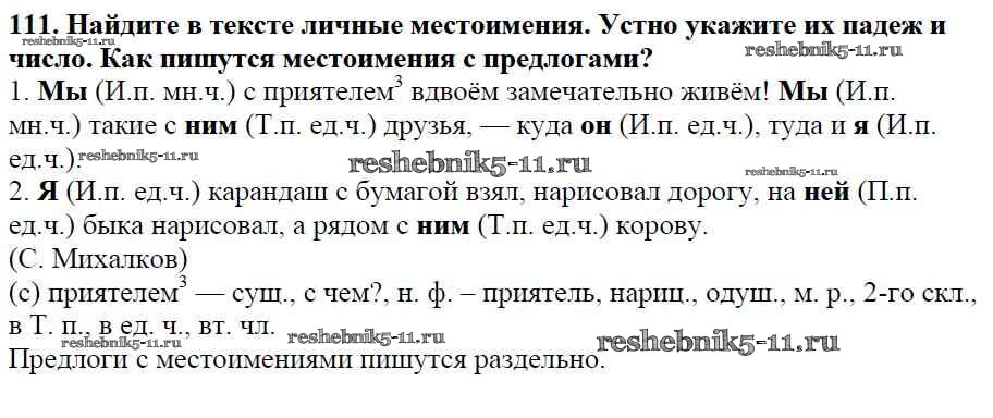 Русский язык за 5 класс Баранов Учебник Просвещение часть 1. упражнение 111