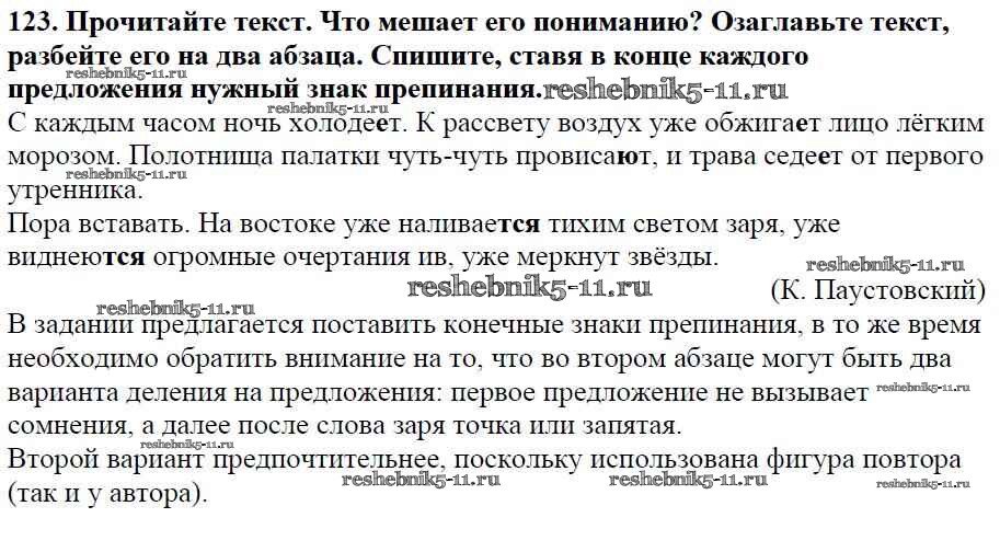Русский язык за 5 класс Баранов Учебник Просвещение часть 1. упражнение 123