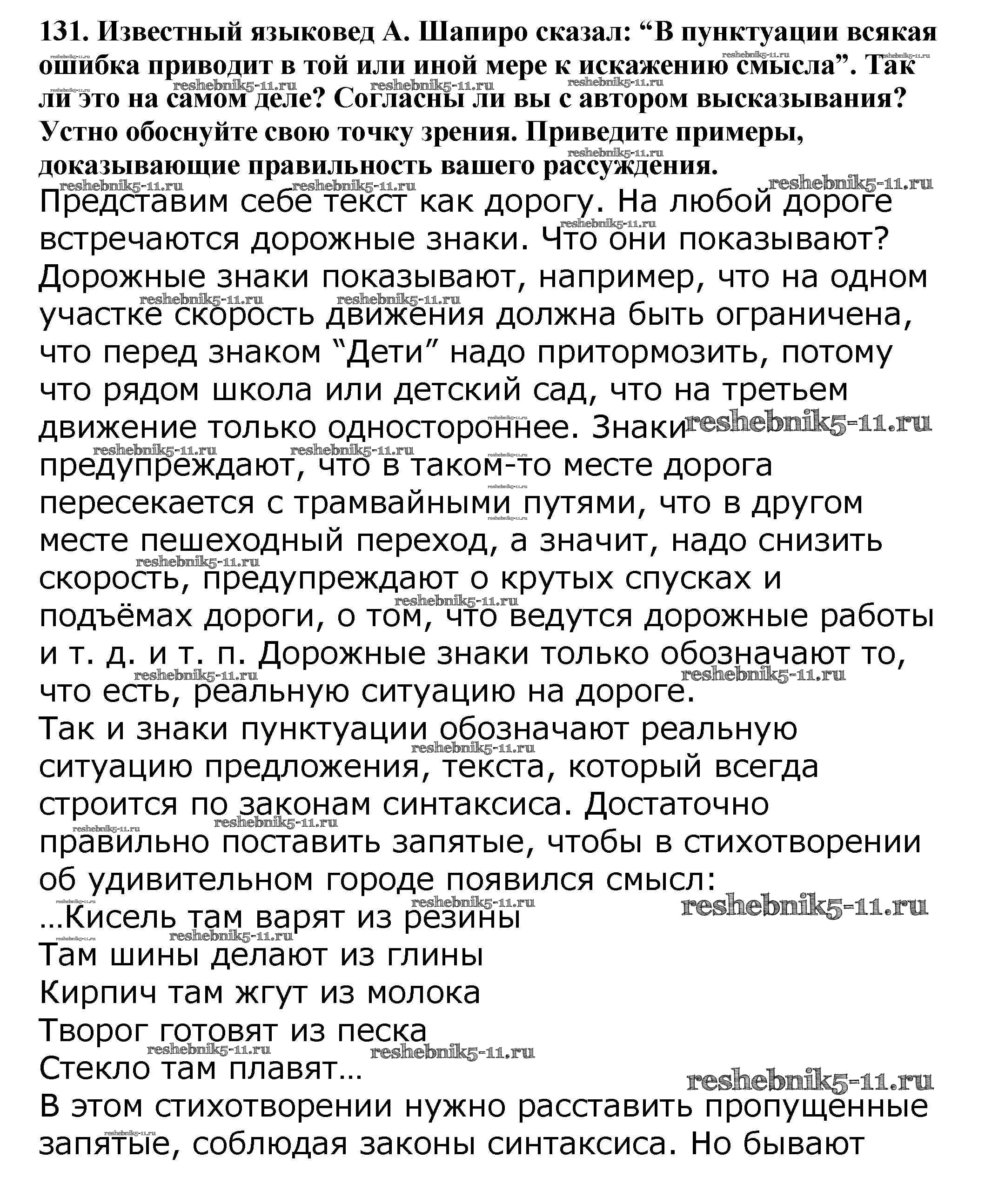 Русский язык за 5 класс Баранов Учебник Просвещение часть 1. упражнение 131
