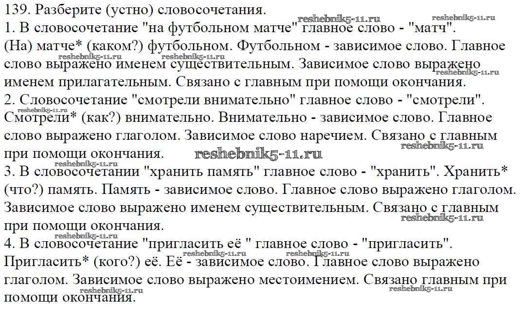 Готовая домашняя работа с ответами по Русскому языку за 5 класс Баранов, Ладыженская, Тростенцова, Кулибаба, Григорян Учебник Часть 1, 2 Просвещение 2016 ФГОС - Часть 1. Упражнения 139