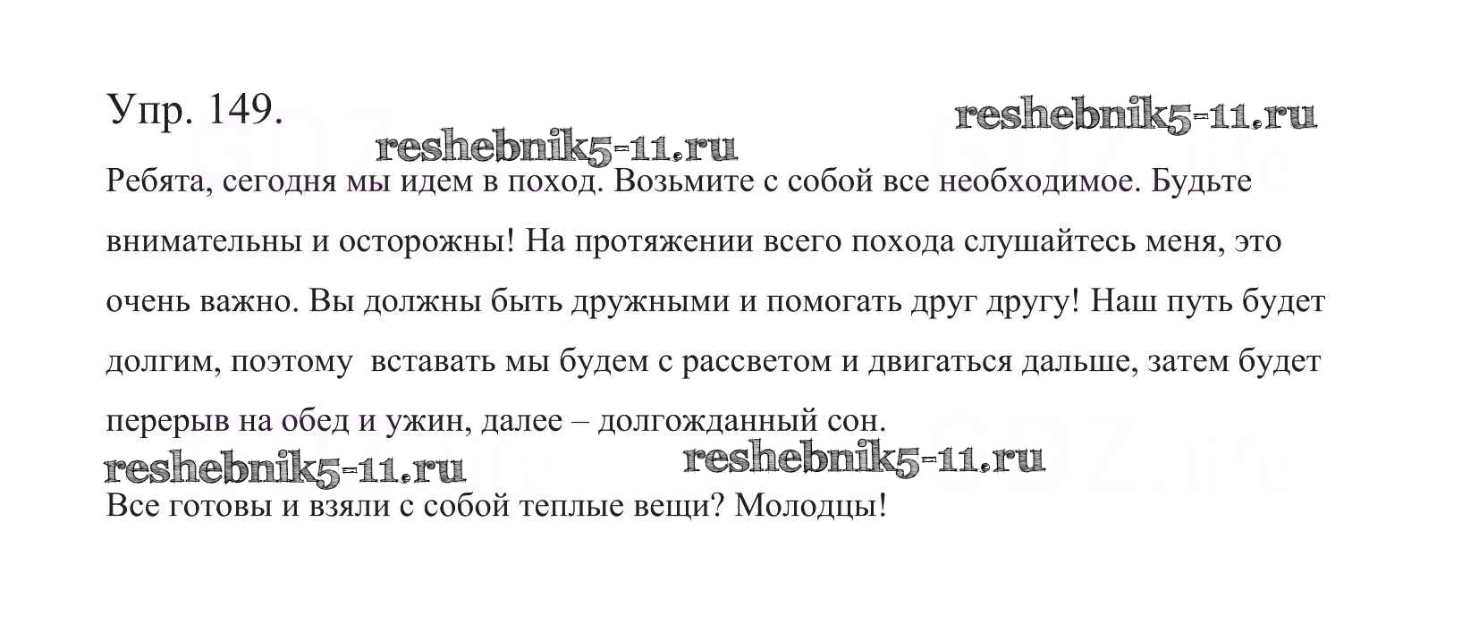Готовая домашняя работа с ответами по Русскому языку за 5 класс Баранов, Ладыженская, Тростенцова, Кулибаба, Григорян Учебник Часть 1, 2 Просвещение 2016 ФГОС - Часть 1. Упражнения 149