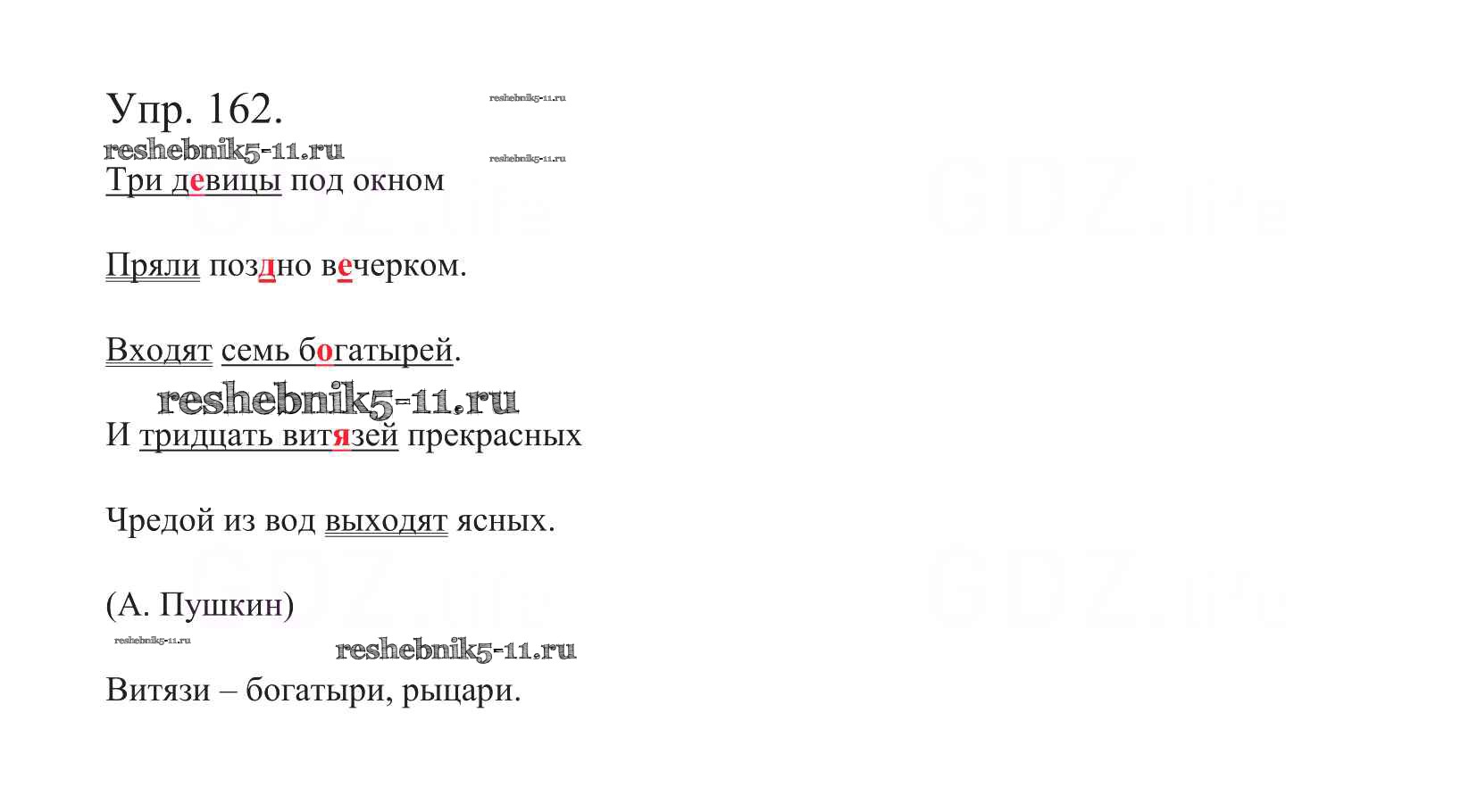 Готовая домашняя работа с ответами по Русскому языку за 5 класс Баранов, Ладыженская, Тростенцова, Кулибаба, Григорян Учебник Часть 1, 2 Просвещение 2016 ФГОС - Часть 1. Упражнения 162