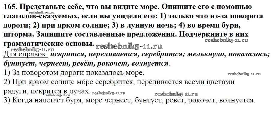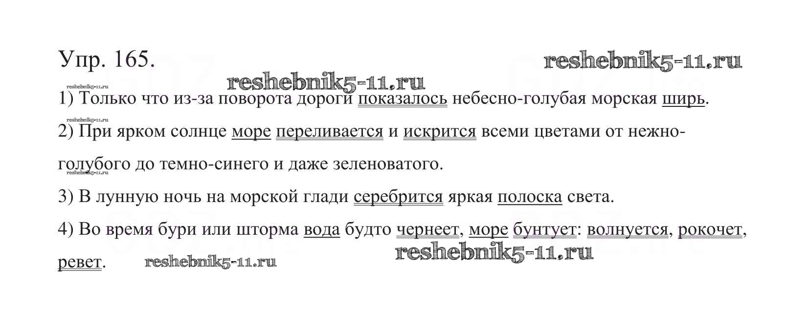 Готовая домашняя работа с ответами по Русскому языку за 5 класс Баранов, Ладыженская, Тростенцова, Кулибаба, Григорян Учебник Часть 1, 2 Просвещение 2016 ФГОС - Часть 1. Упражнения 165