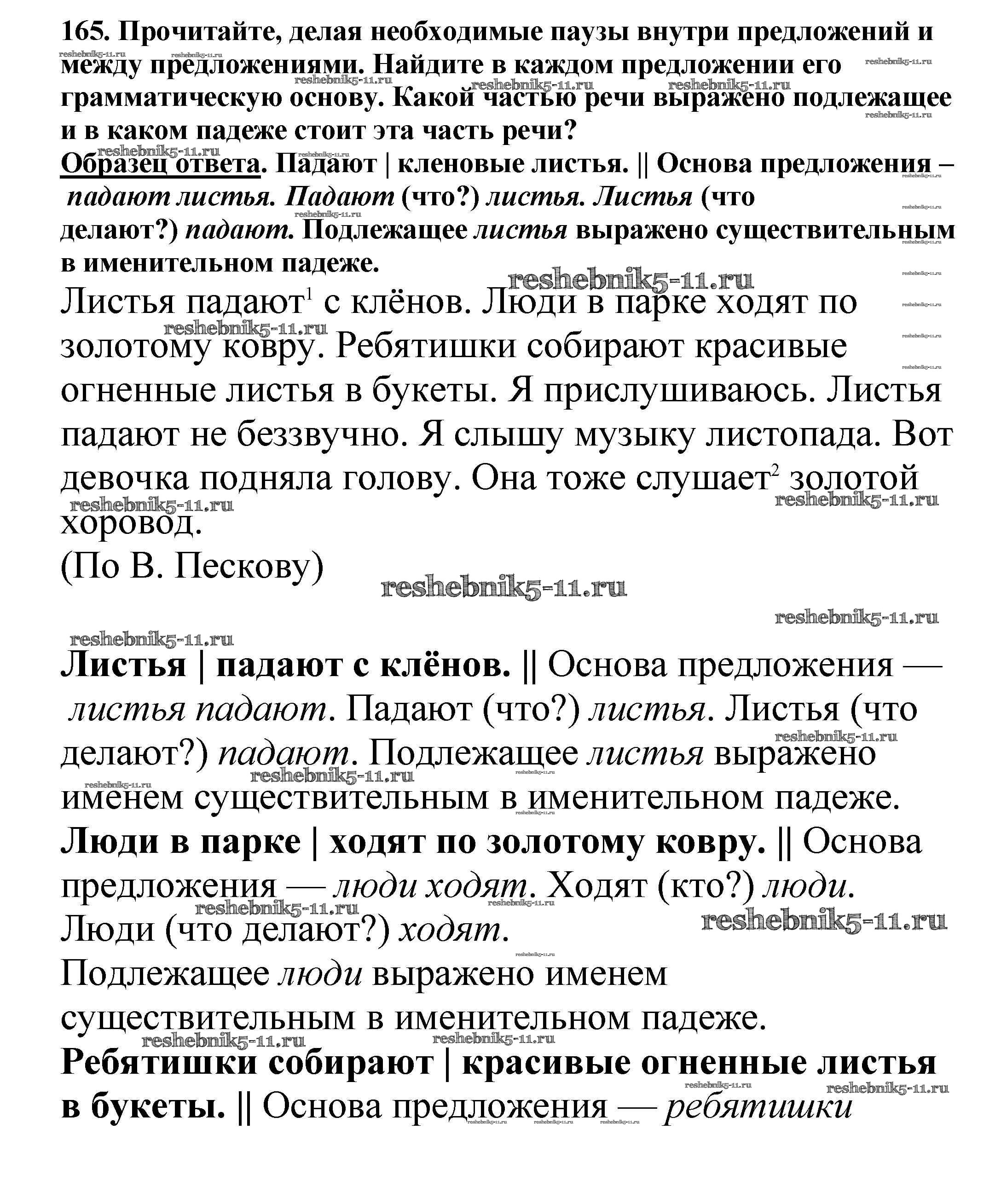 Русский язык за 5 класс Баранов Учебник Просвещение часть 1. упражнение 165