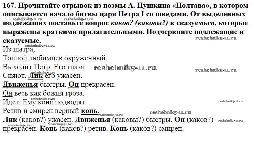 Готовая домашняя работа с ответами по Русскому языку за 5 класс Баранов, Ладыженская, Тростенцова, Кулибаба, Григорян Учебник Часть 1, 2 Просвещение 2016 ФГОС - Часть 1. Упражнения 167