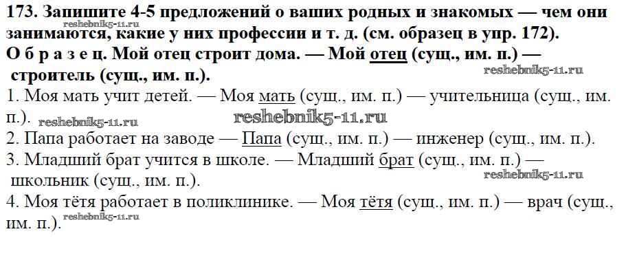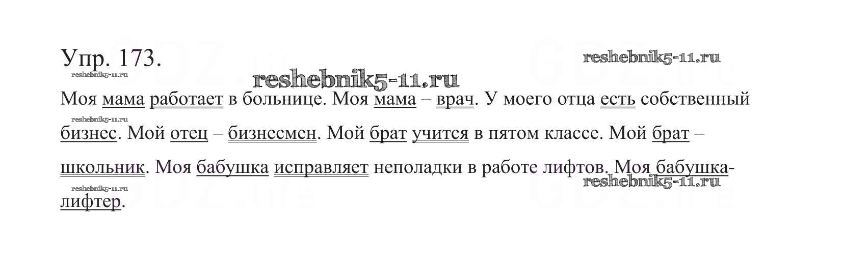 Готовая домашняя работа с ответами по Русскому языку за 5 класс Баранов, Ладыженская, Тростенцова, Кулибаба, Григорян Учебник Часть 1, 2 Просвещение 2016 ФГОС - Часть 1. Упражнения 173