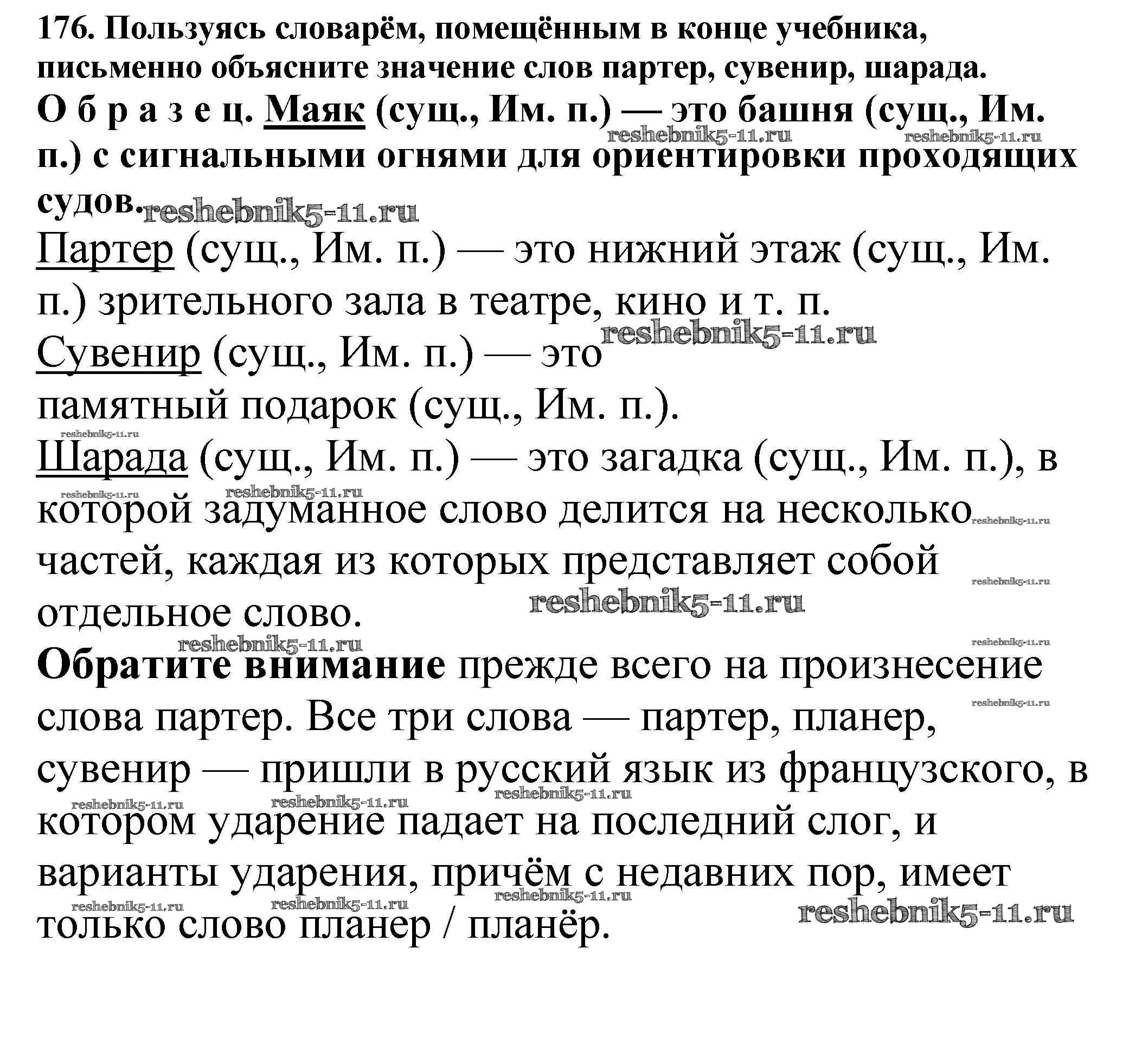 Русский язык за 5 класс Баранов Учебник Просвещение часть 1. упражнение 176