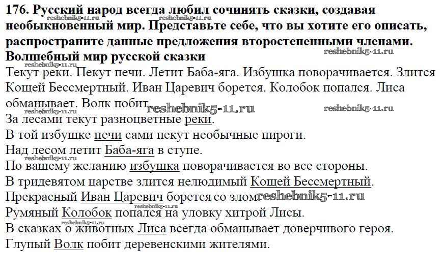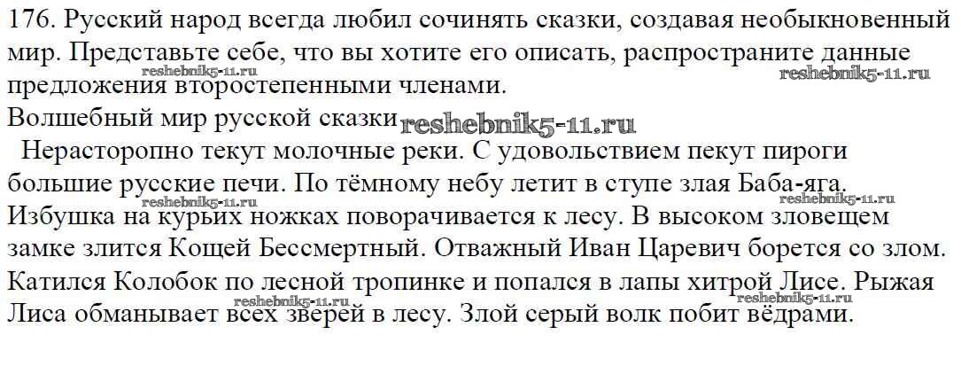 Готовая домашняя работа с ответами по Русскому языку за 5 класс Баранов, Ладыженская, Тростенцова, Кулибаба, Григорян Учебник Часть 1, 2 Просвещение 2016 ФГОС - Часть 1. Упражнения 176