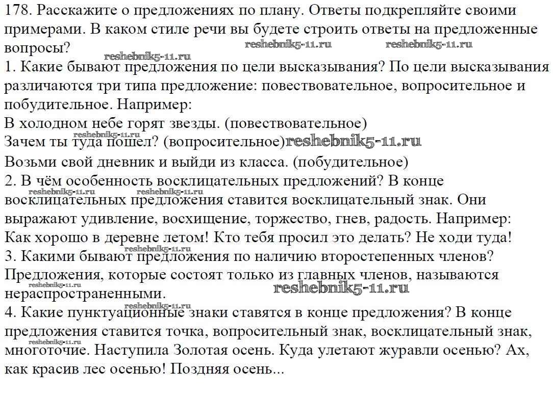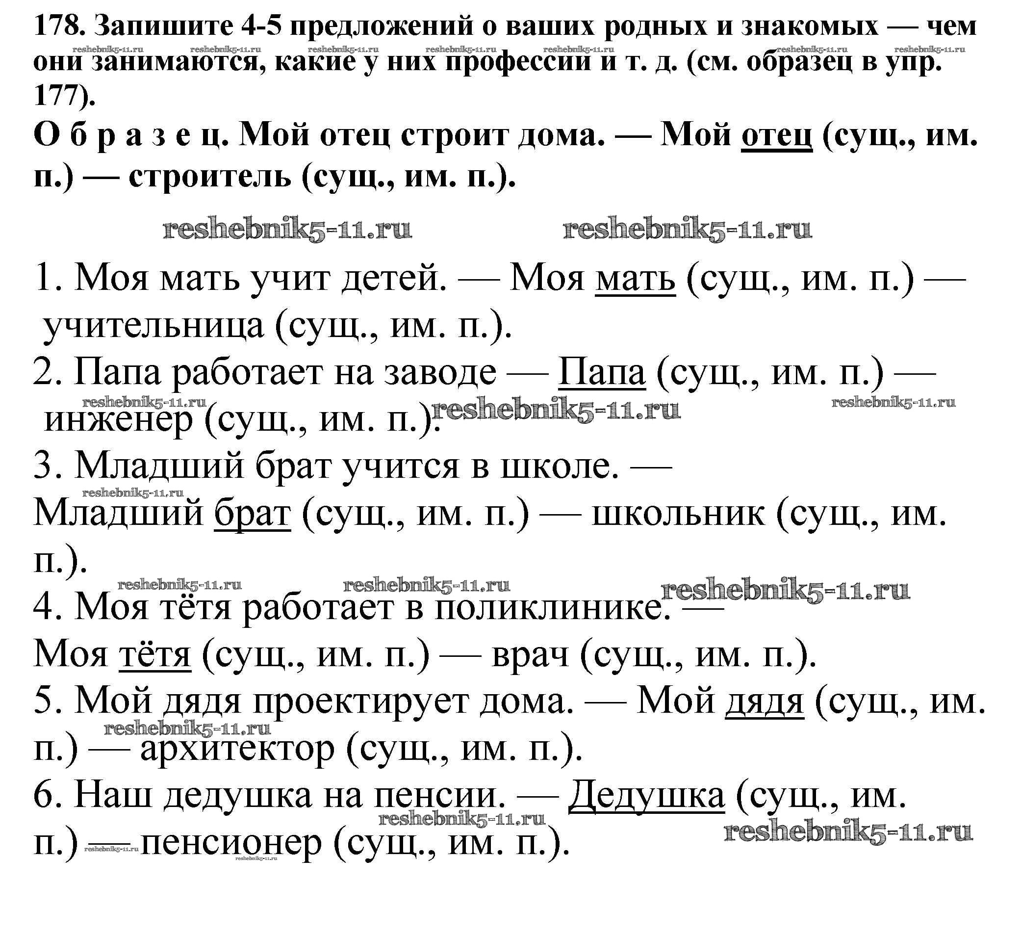 Готовая домашняя работа с ответами по Русскому языку за 5 класс Баранов, Ладыженская, Тростенцова, Кулибаба, Григорян Учебник Часть 1, 2 Просвещение 2016 ФГОС - Часть 1. Упражнения 178
