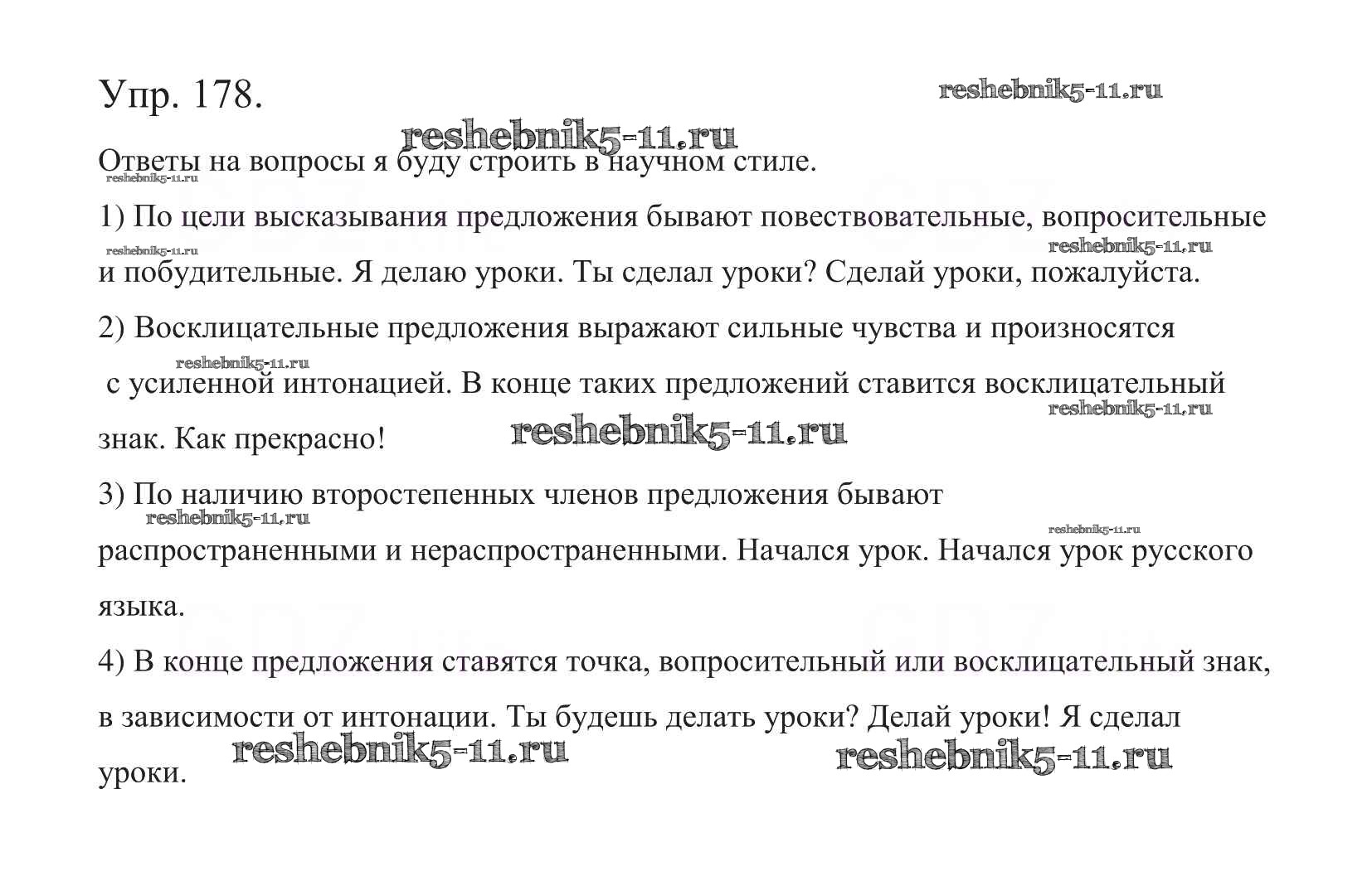 Русский язык за 5 класс Баранов Учебник Просвещение часть 1. упражнение 178