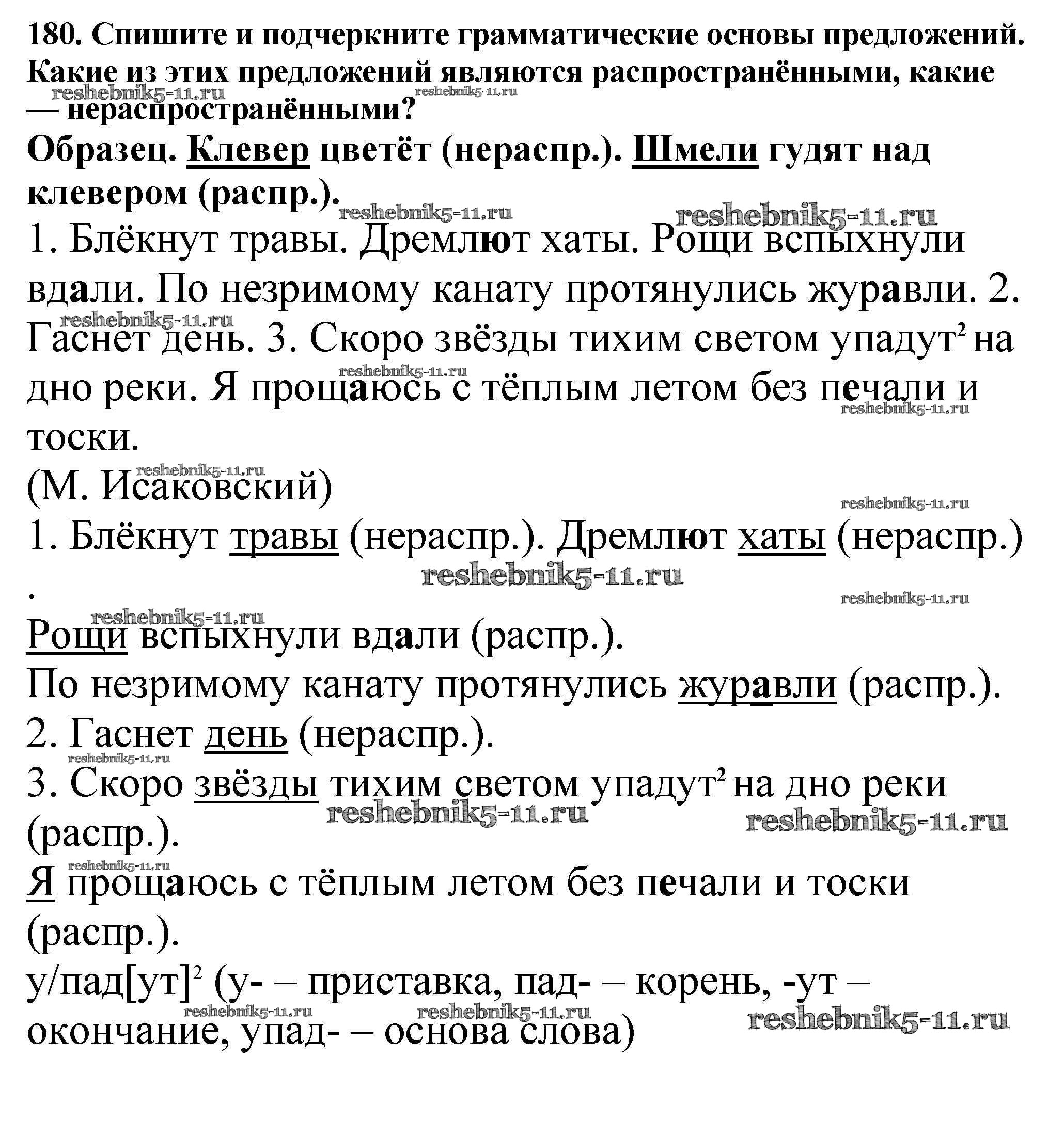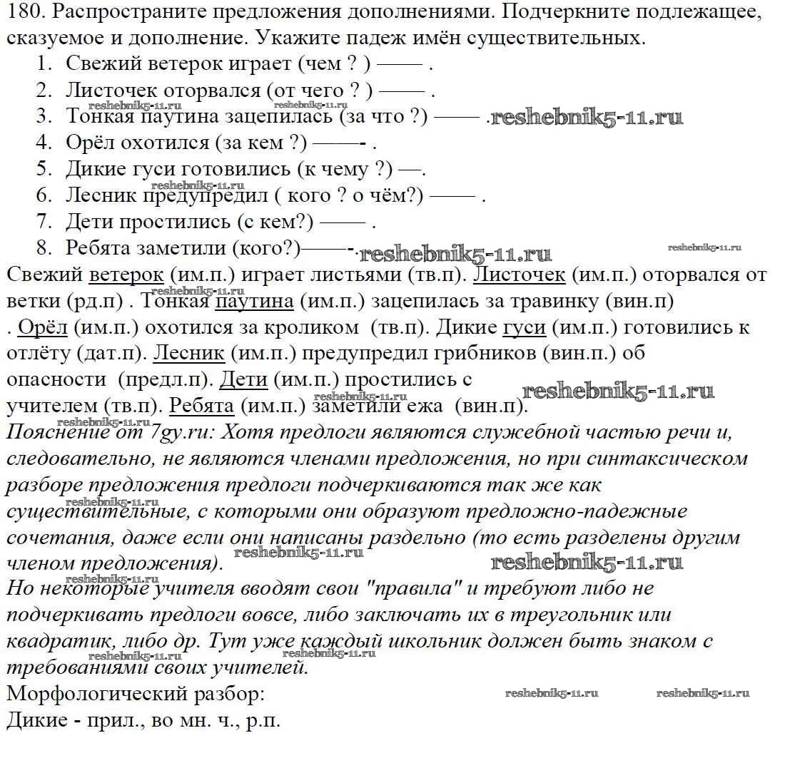 Готовая домашняя работа с ответами по Русскому языку за 5 класс Баранов, Ладыженская, Тростенцова, Кулибаба, Григорян Учебник Часть 1, 2 Просвещение 2016 ФГОС - Часть 1. Упражнения 180