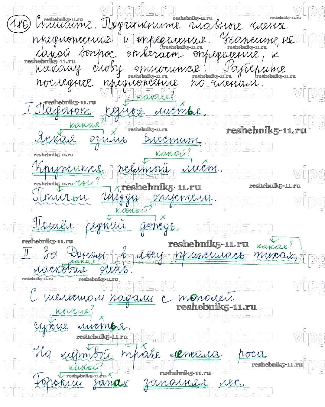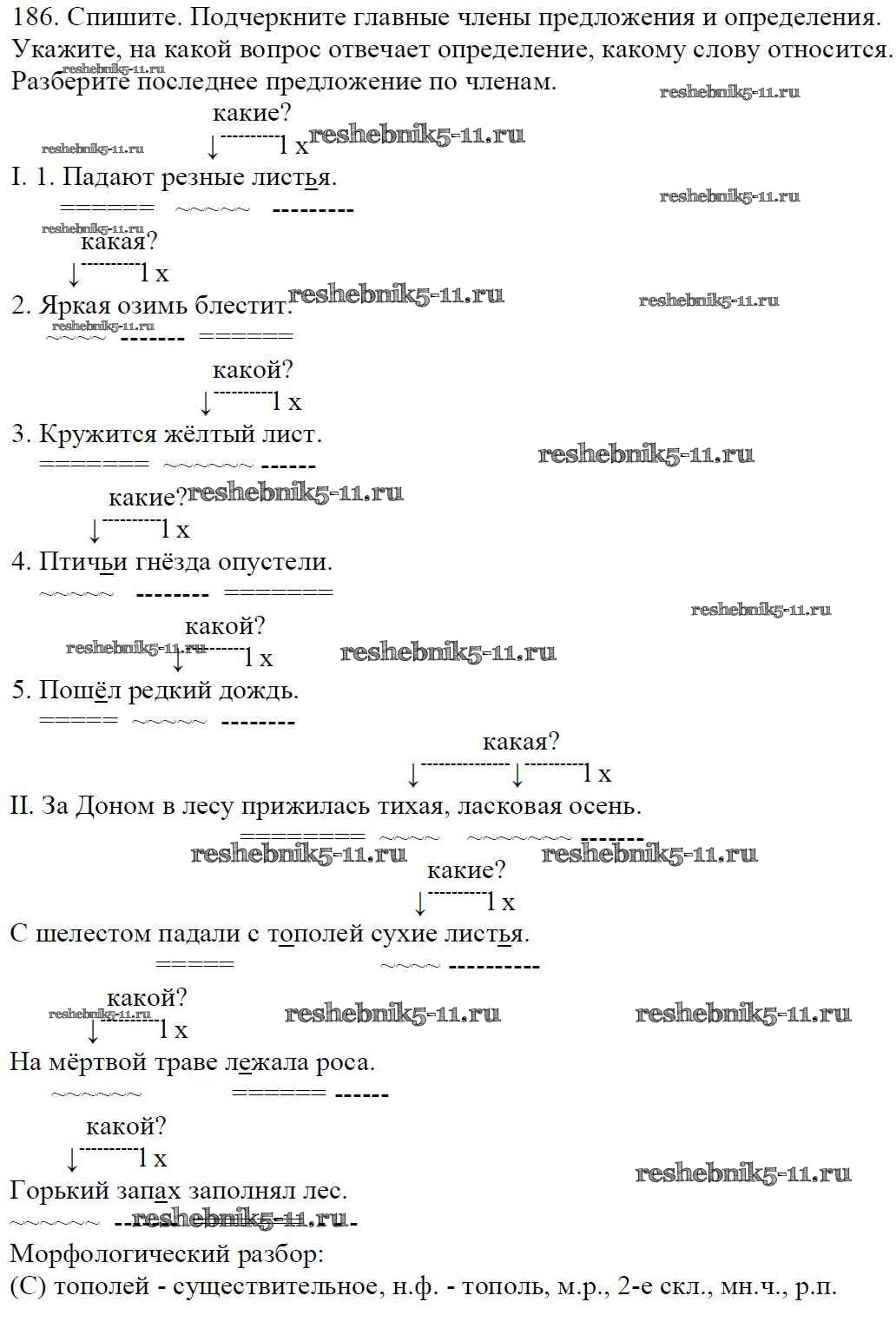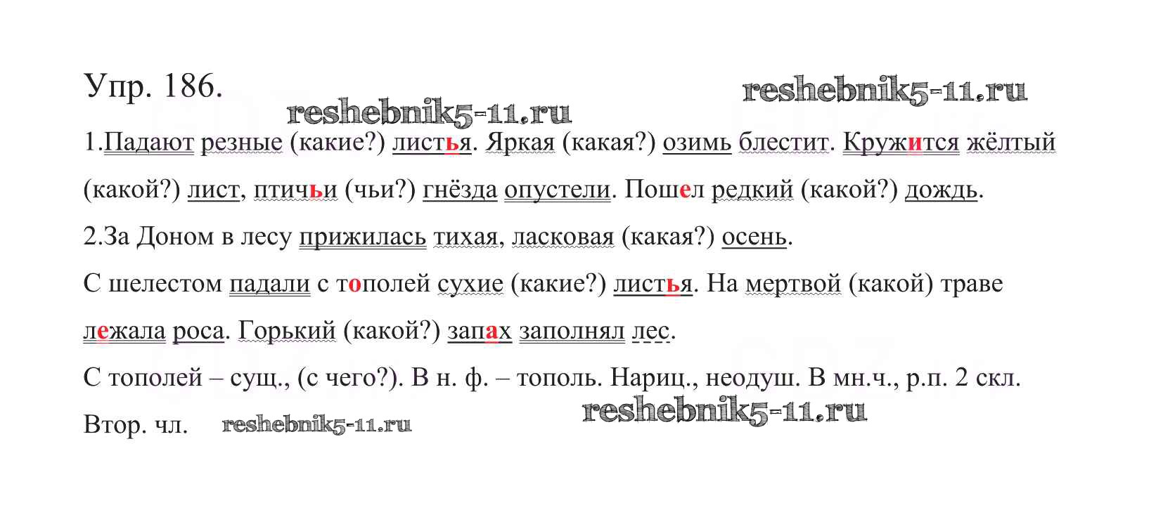 Готовая домашняя работа с ответами по Русскому языку за 5 класс Баранов, Ладыженская, Тростенцова, Кулибаба, Григорян Учебник Часть 1, 2 Просвещение 2016 ФГОС - Часть 1. Упражнения 186