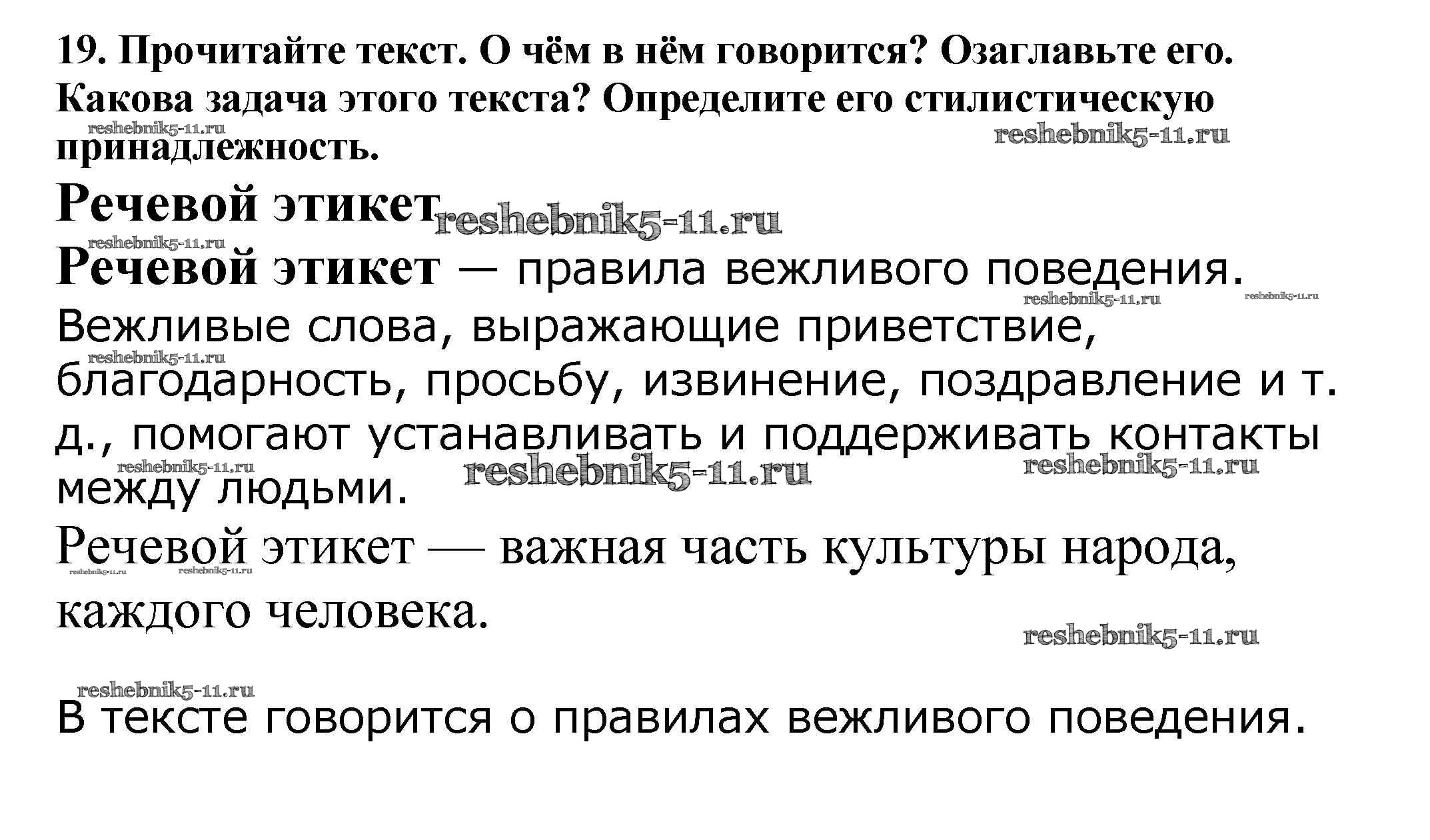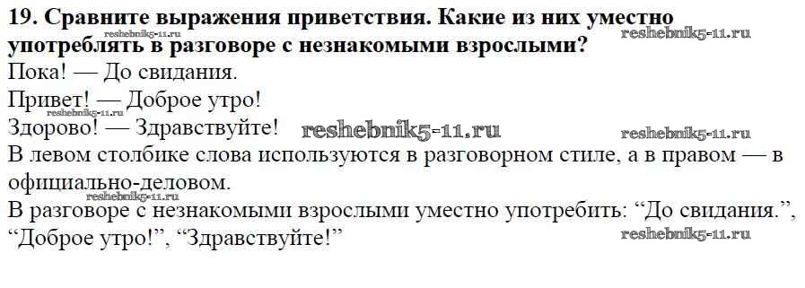 Русский язык за 5 класс Баранов Учебник Просвещение часть 1. упражнение 19