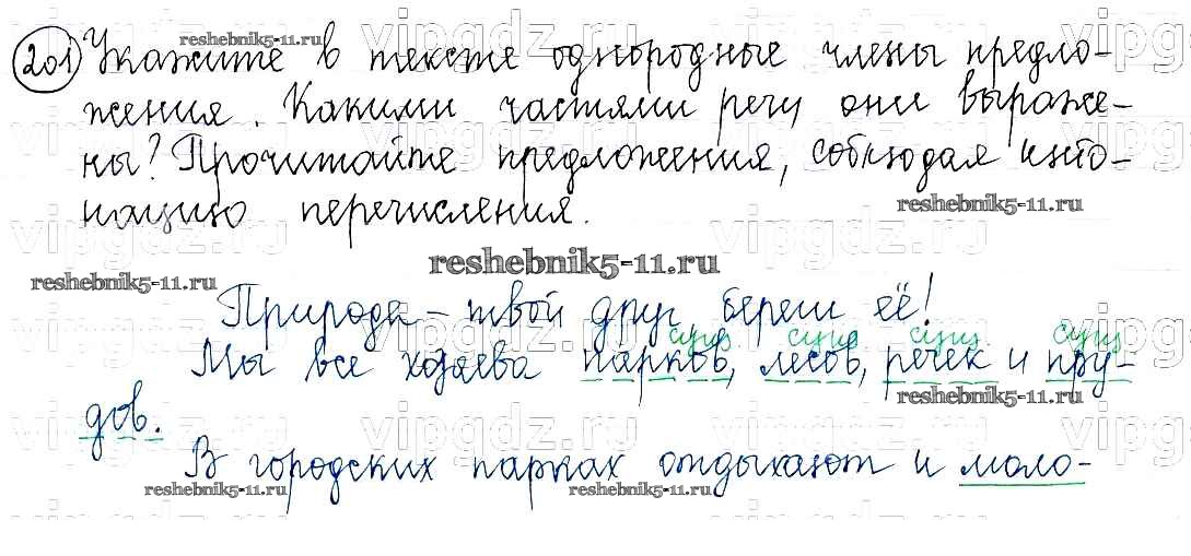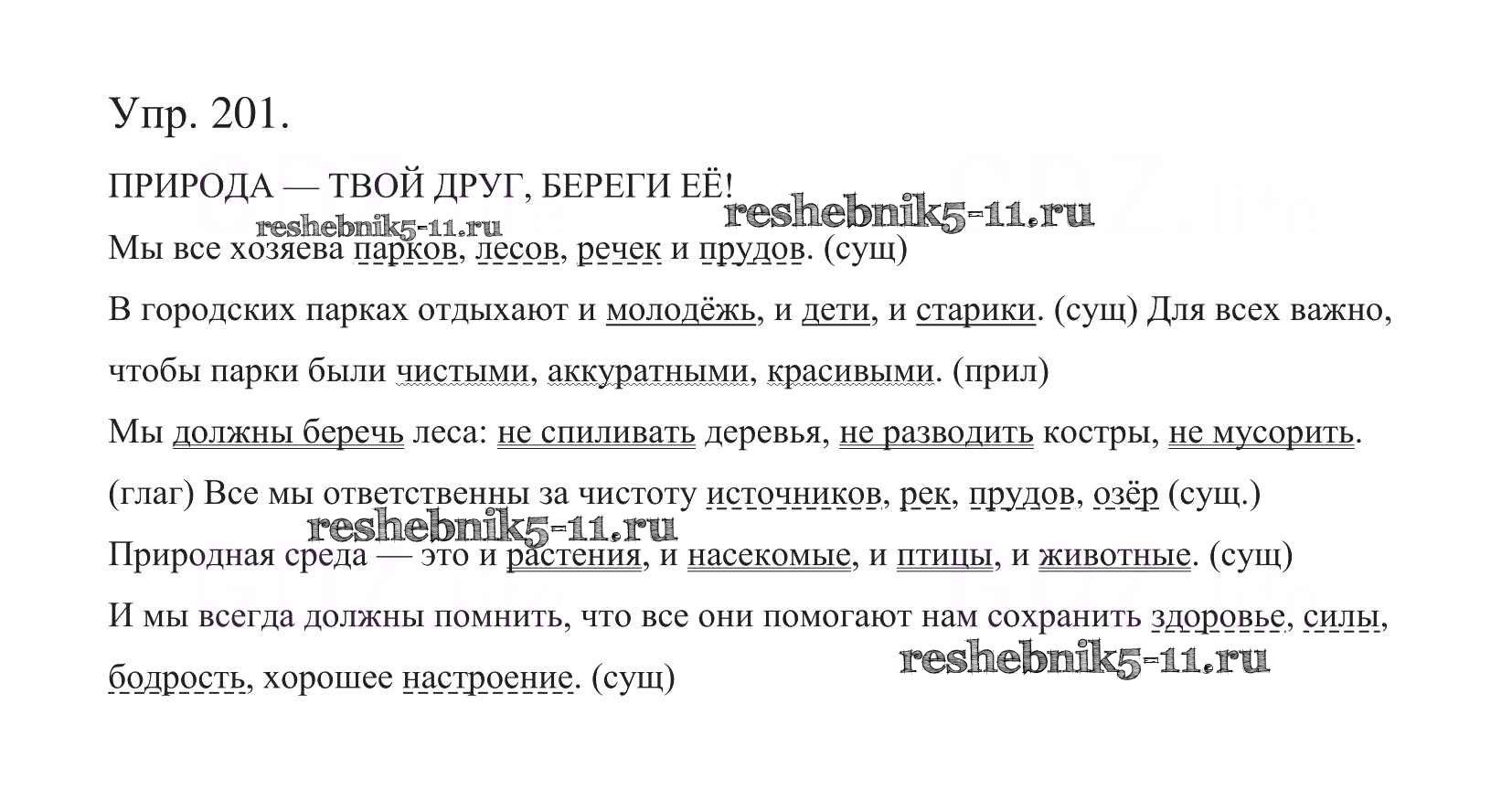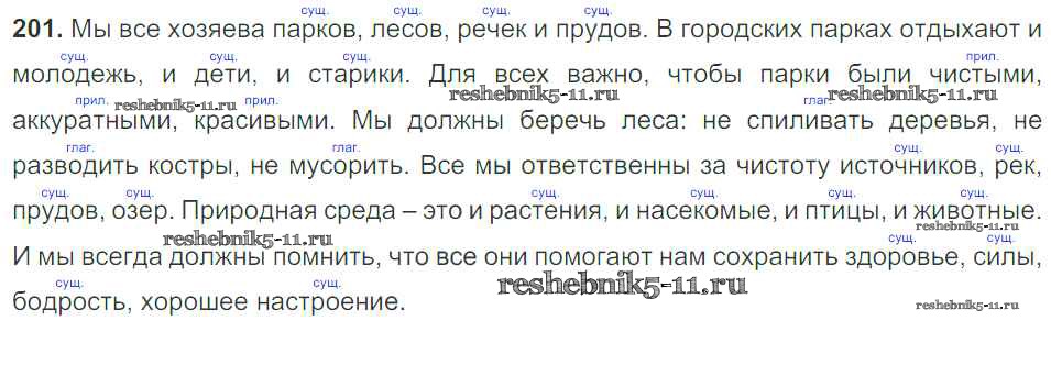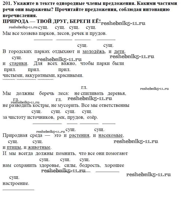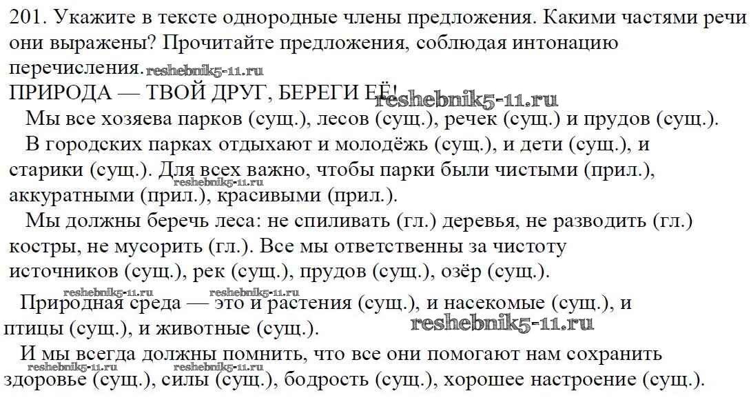 Готовая домашняя работа с ответами по Русскому языку за 5 класс Баранов, Ладыженская, Тростенцова, Кулибаба, Григорян Учебник Часть 1, 2 Просвещение 2016 ФГОС - Часть 1. Упражнения 201
