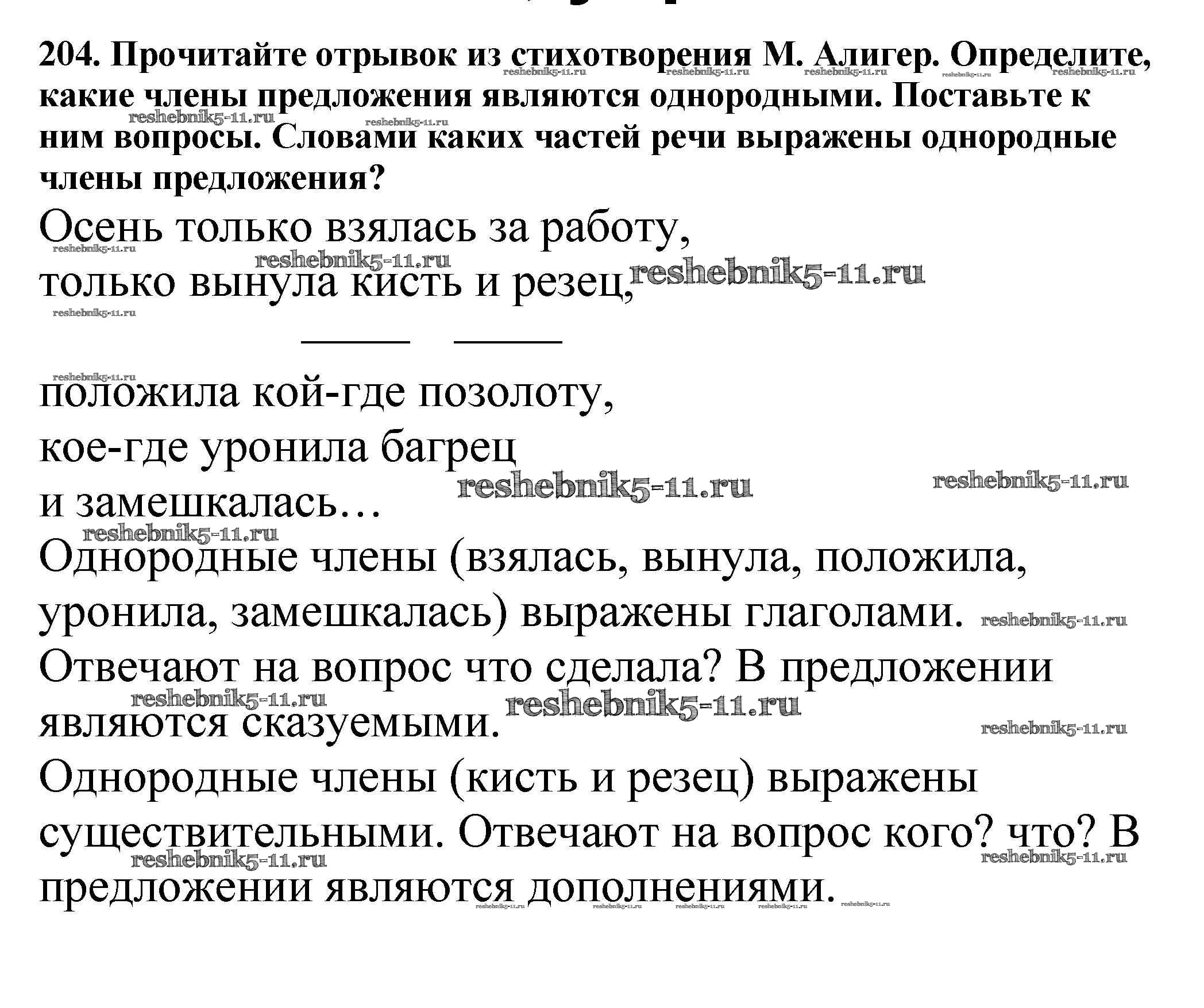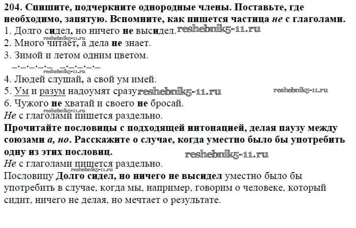 Готовая домашняя работа с ответами по Русскому языку за 5 класс Баранов, Ладыженская, Тростенцова, Кулибаба, Григорян Учебник Часть 1, 2 Просвещение 2016 ФГОС - Часть 1. Упражнения 204