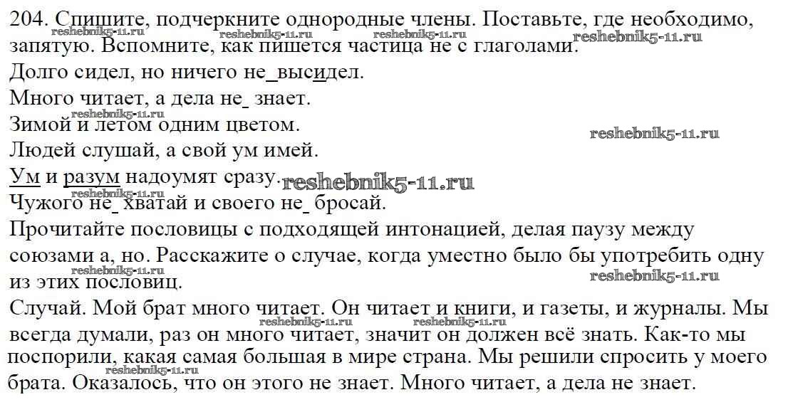 Русский язык за 5 класс Баранов Учебник Просвещение часть 1. упражнение 204