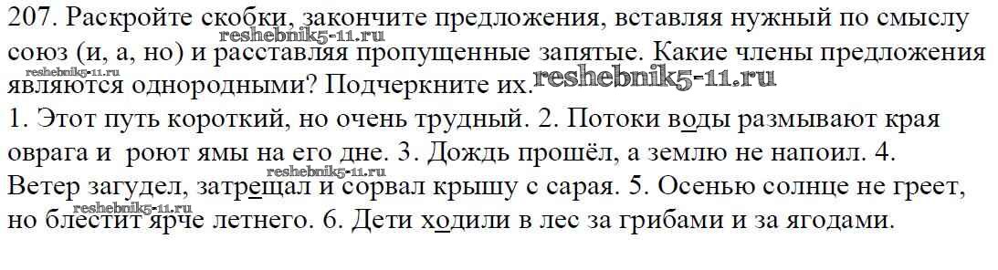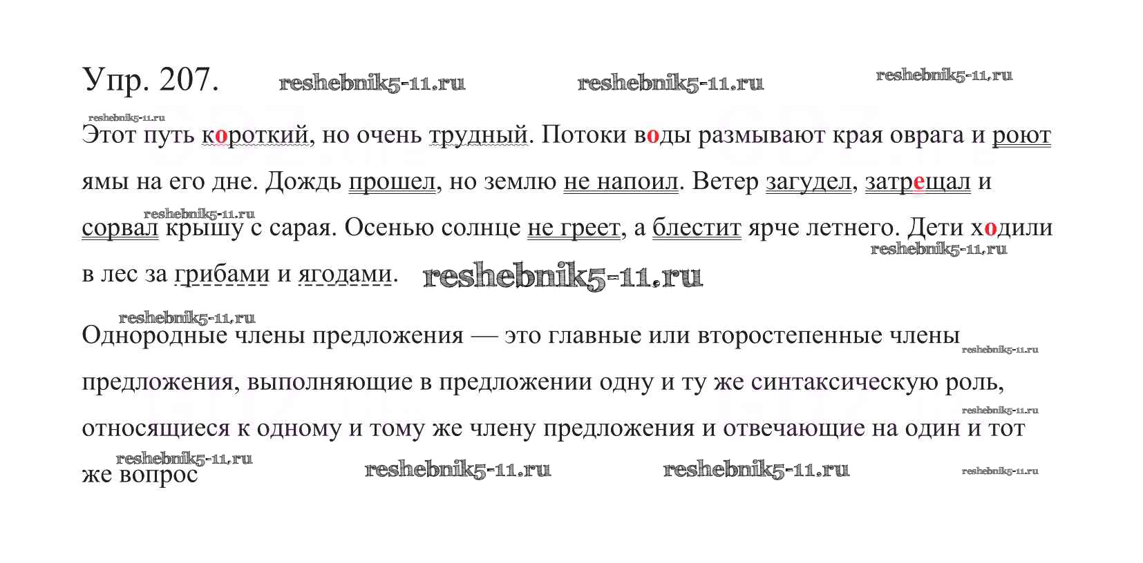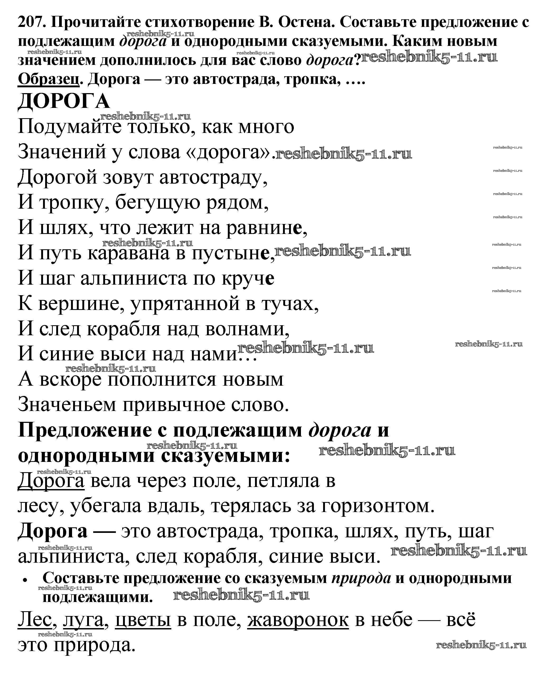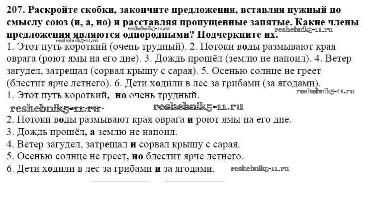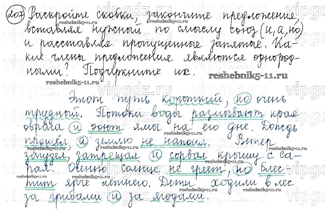 Готовая домашняя работа с ответами по Русскому языку за 5 класс Баранов, Ладыженская, Тростенцова, Кулибаба, Григорян Учебник Часть 1, 2 Просвещение 2016 ФГОС - Часть 1. Упражнения 207