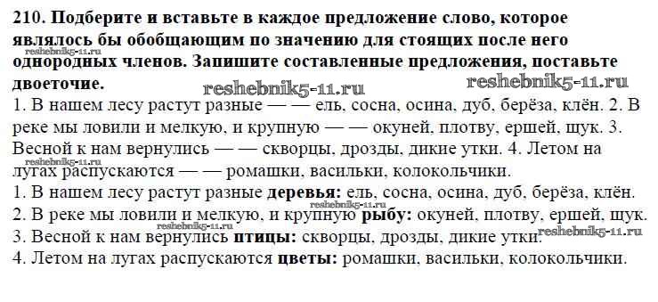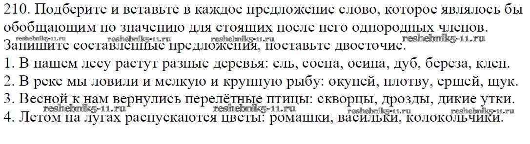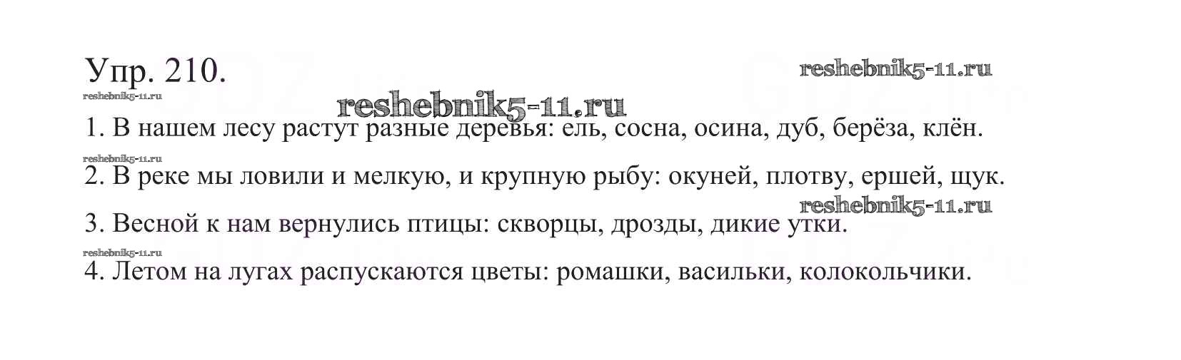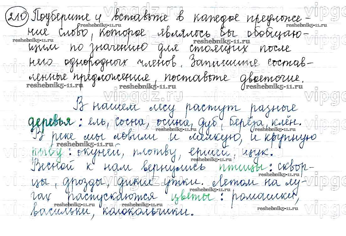 Готовая домашняя работа с ответами по Русскому языку за 5 класс Баранов, Ладыженская, Тростенцова, Кулибаба, Григорян Учебник Часть 1, 2 Просвещение 2016 ФГОС - Часть 1. Упражнения 210