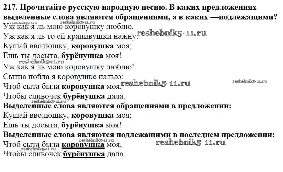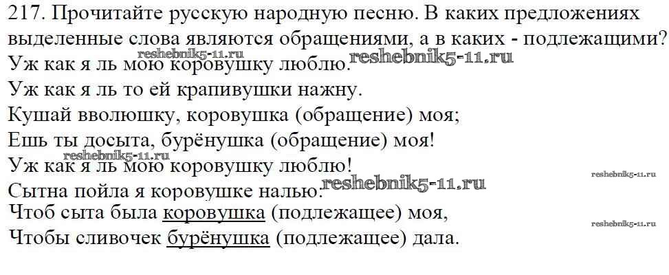 Готовая домашняя работа с ответами по Русскому языку за 5 класс Баранов, Ладыженская, Тростенцова, Кулибаба, Григорян Учебник Часть 1, 2 Просвещение 2016 ФГОС - Часть 1. Упражнения 217