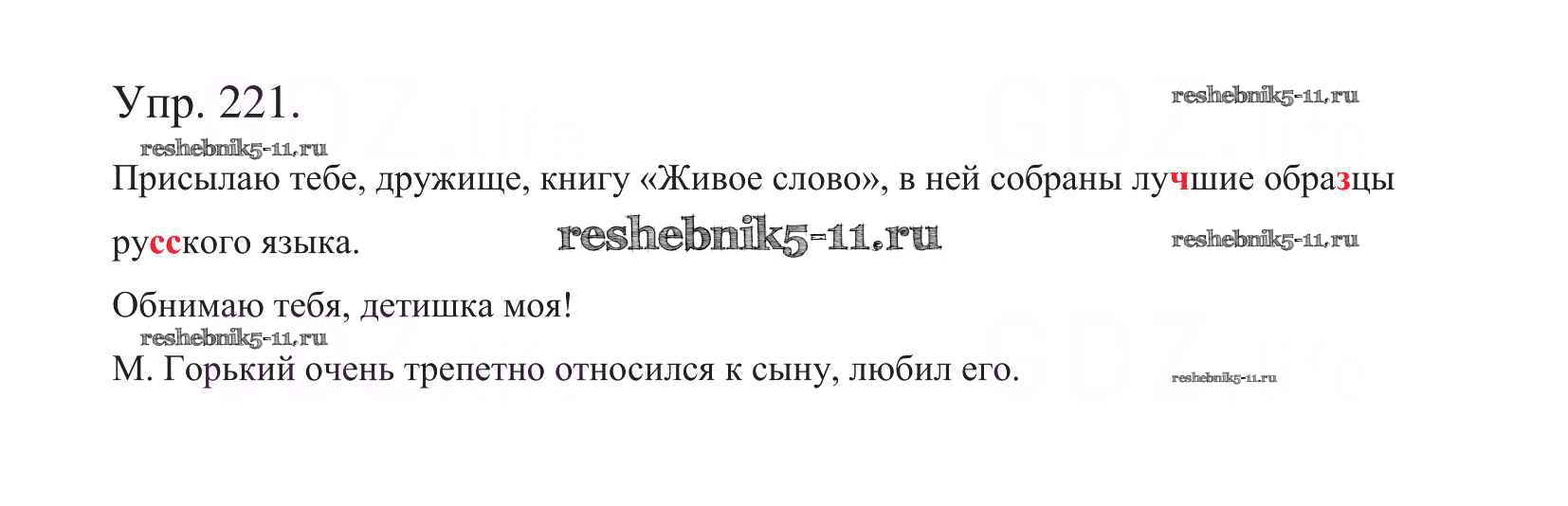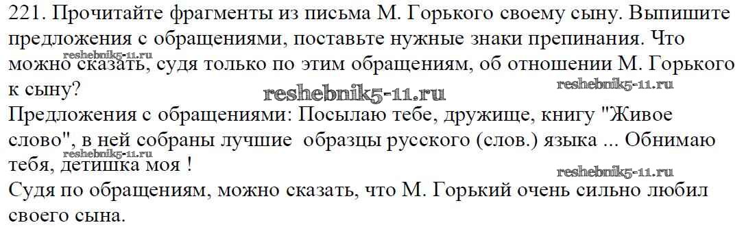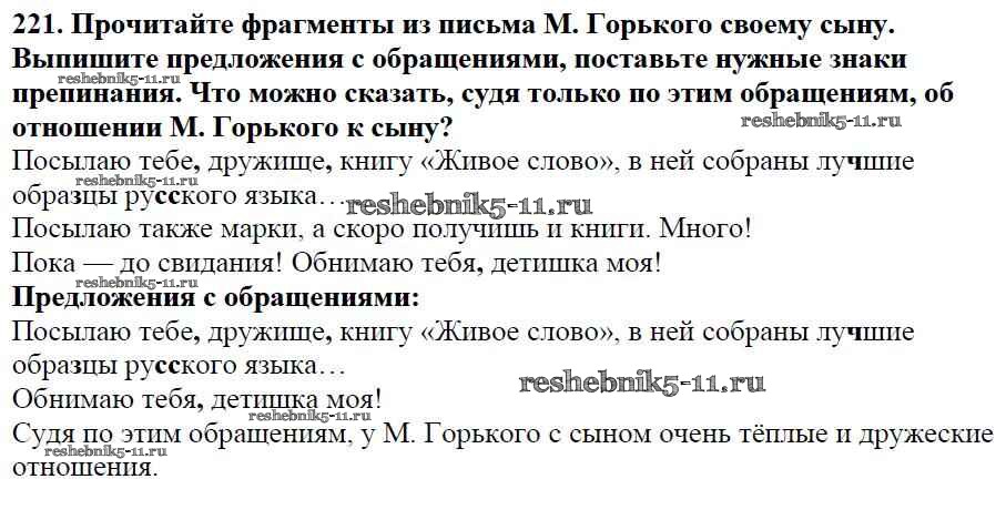 Готовая домашняя работа с ответами по Русскому языку за 5 класс Баранов, Ладыженская, Тростенцова, Кулибаба, Григорян Учебник Часть 1, 2 Просвещение 2016 ФГОС - Часть 1. Упражнения 221