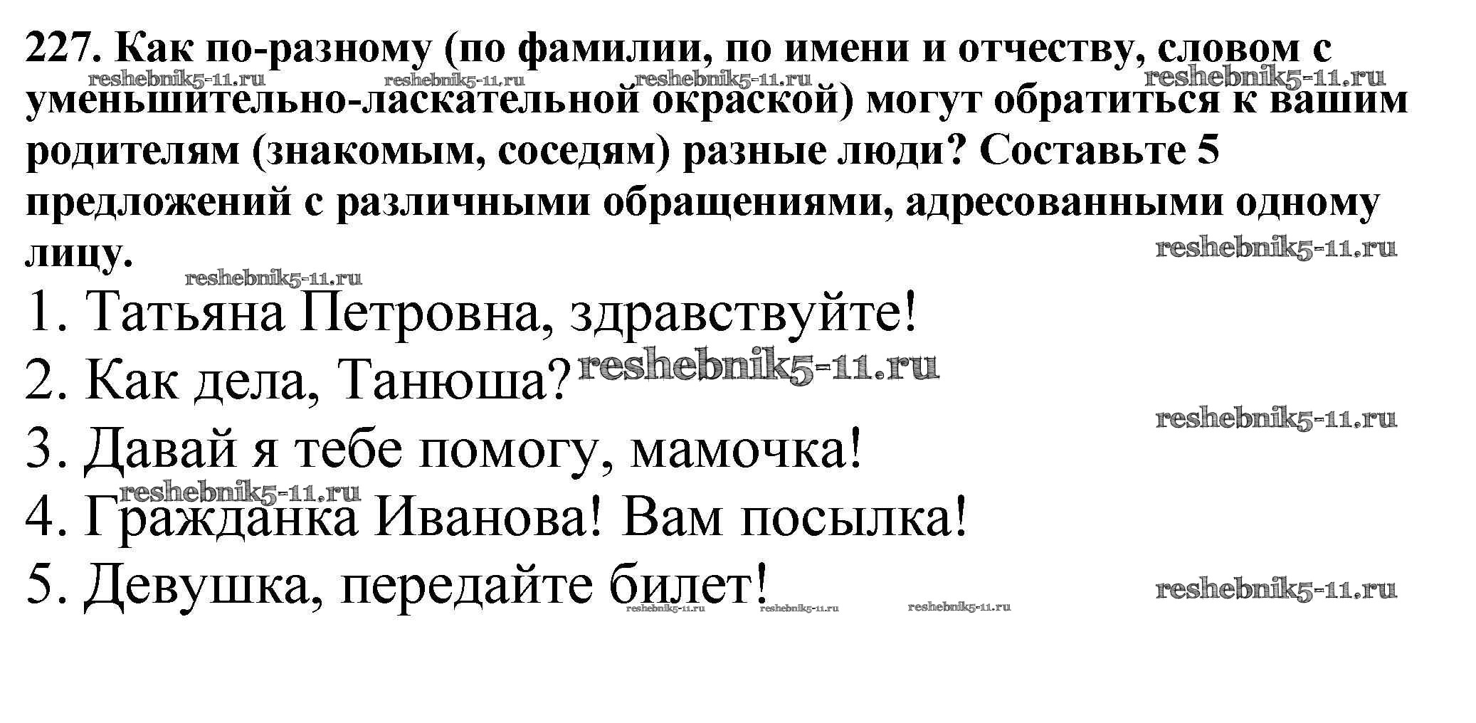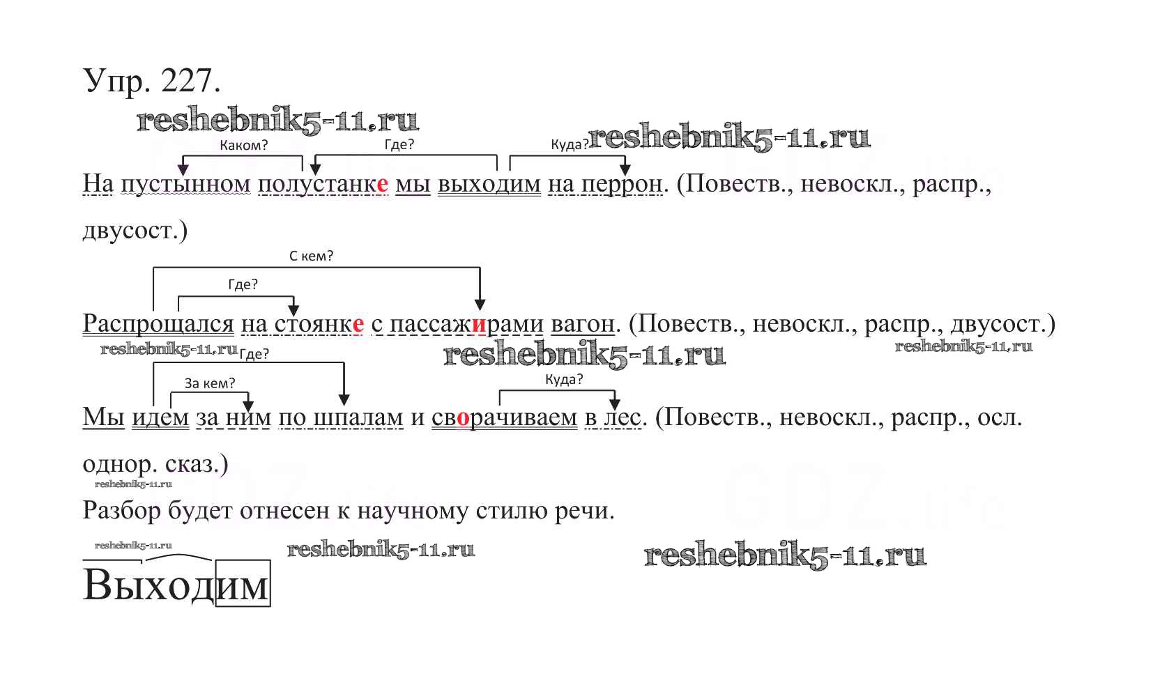 Готовая домашняя работа с ответами по Русскому языку за 5 класс Баранов, Ладыженская, Тростенцова, Кулибаба, Григорян Учебник Часть 1, 2 Просвещение 2016 ФГОС - Часть 1. Упражнения 227