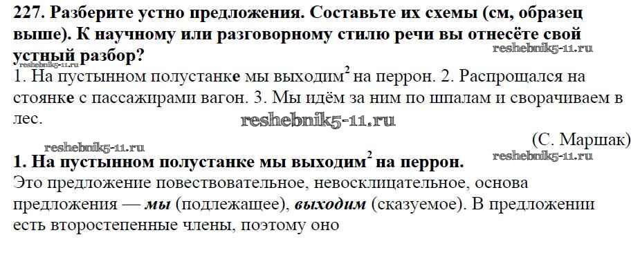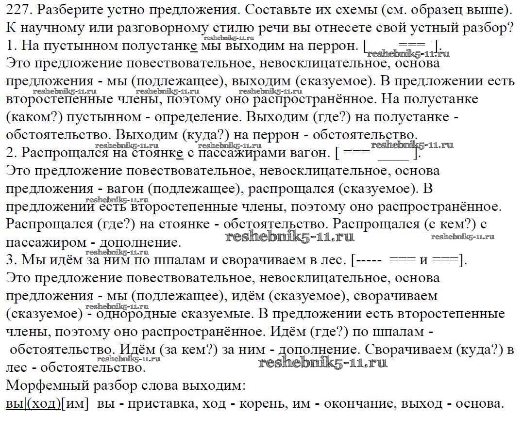Русский язык за 5 класс Баранов Учебник Просвещение часть 1. упражнение 227