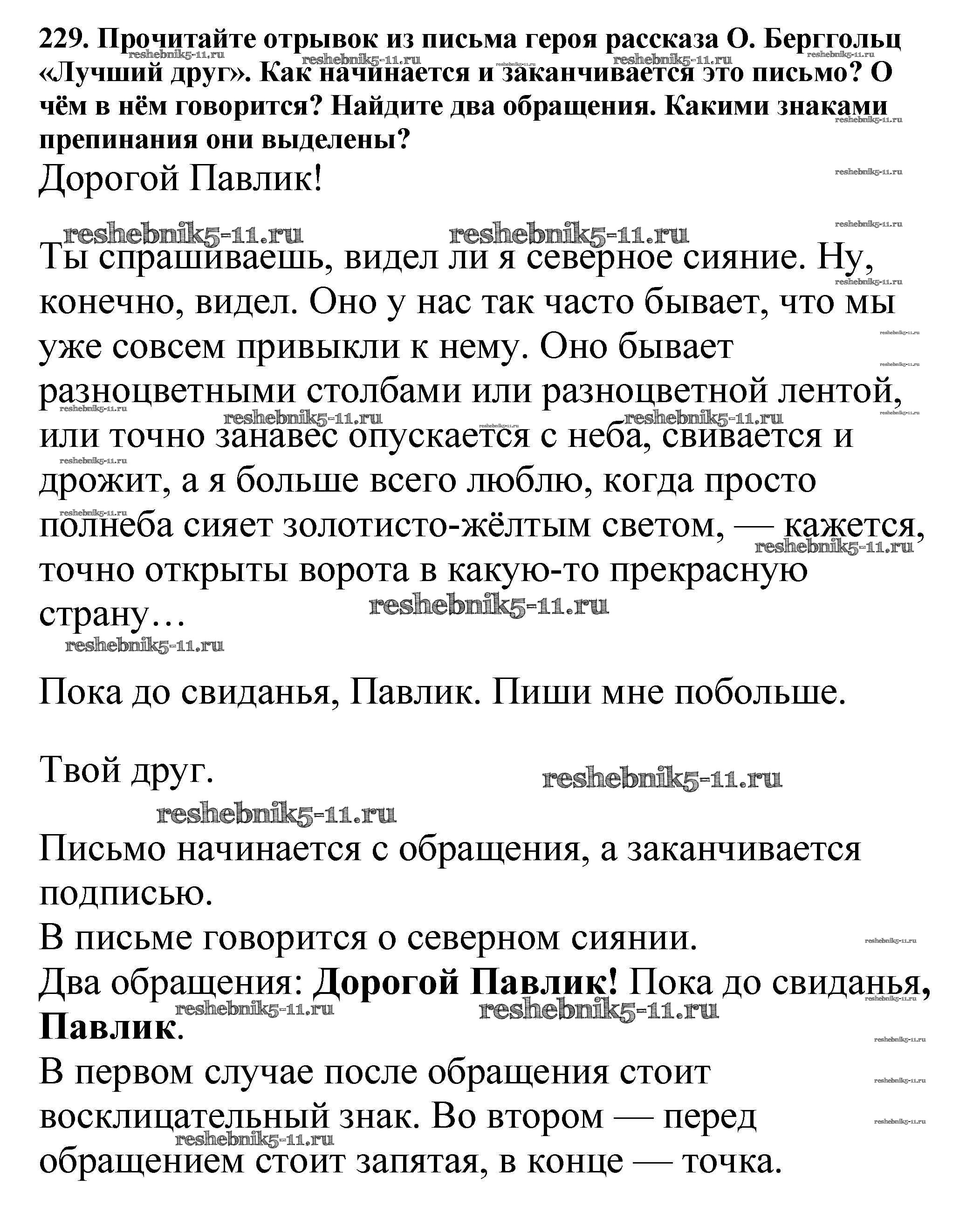 Готовая домашняя работа с ответами по Русскому языку за 5 класс Баранов, Ладыженская, Тростенцова, Кулибаба, Григорян Учебник Часть 1, 2 Просвещение 2016 ФГОС - Часть 1. Упражнения 229