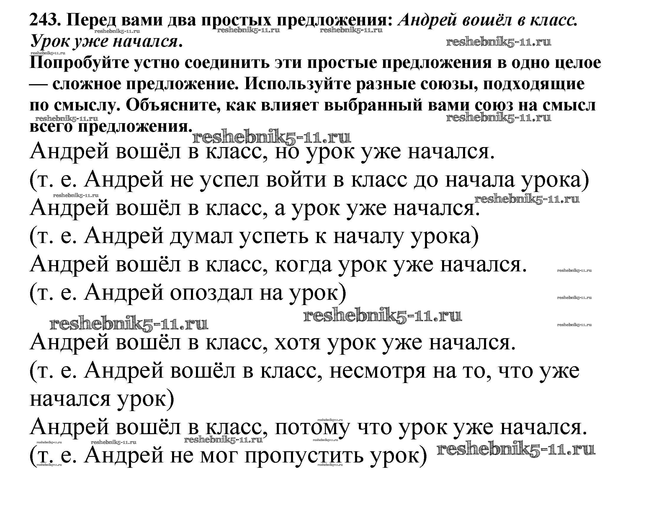 Русский язык за 5 класс Баранов Учебник Просвещение часть 1. упражнение 243