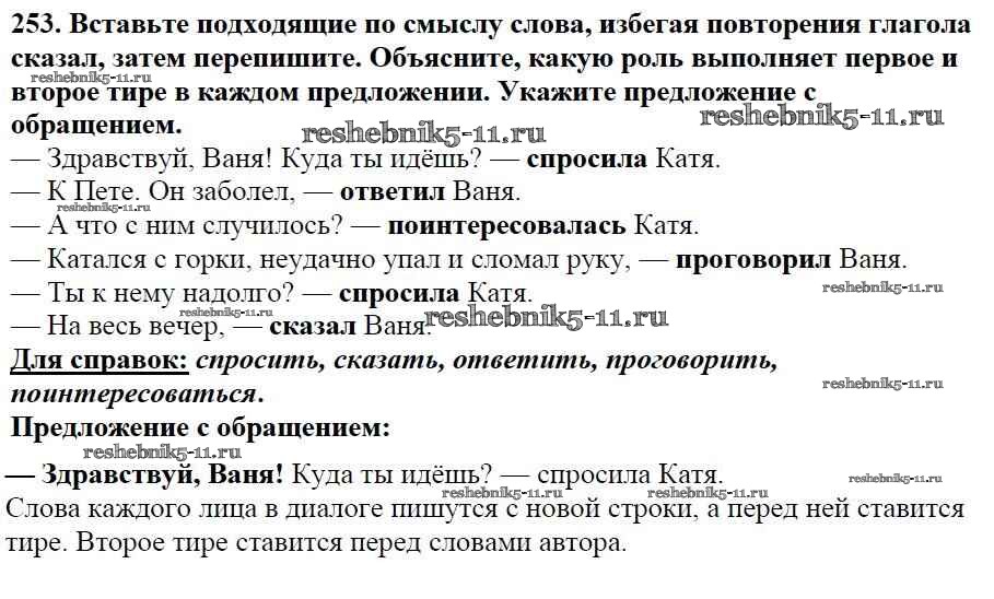 Готовая домашняя работа с ответами по Русскому языку за 5 класс Баранов, Ладыженская, Тростенцова, Кулибаба, Григорян Учебник Часть 1, 2 Просвещение 2016 ФГОС - Часть 1. Упражнения 253