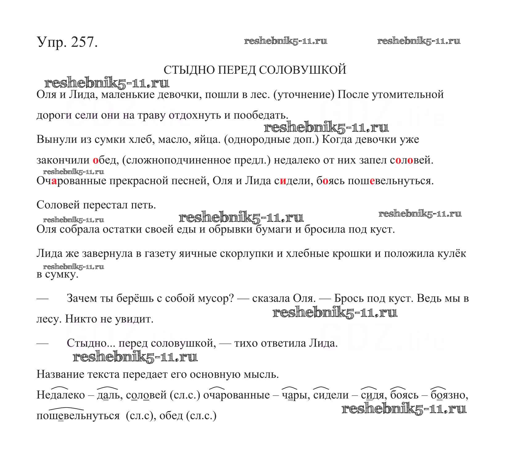 Готовая домашняя работа с ответами по Русскому языку за 5 класс Баранов, Ладыженская, Тростенцова, Кулибаба, Григорян Учебник Часть 1, 2 Просвещение 2016 ФГОС - Часть 1. Упражнения 257