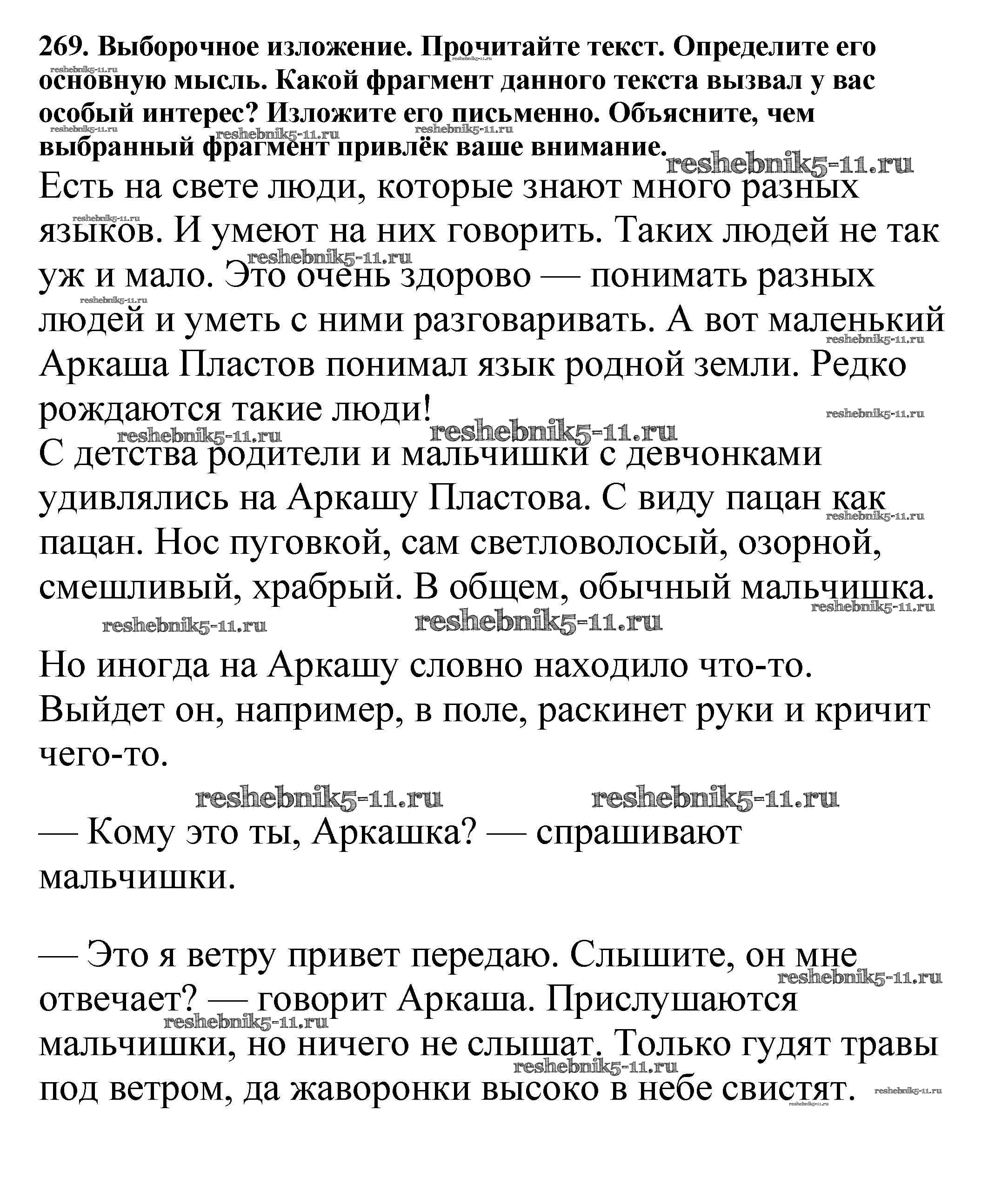 Русский язык за 5 класс Баранов Учебник Просвещение часть 1. упражнение 269