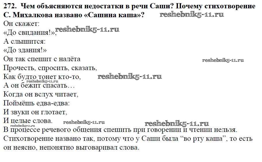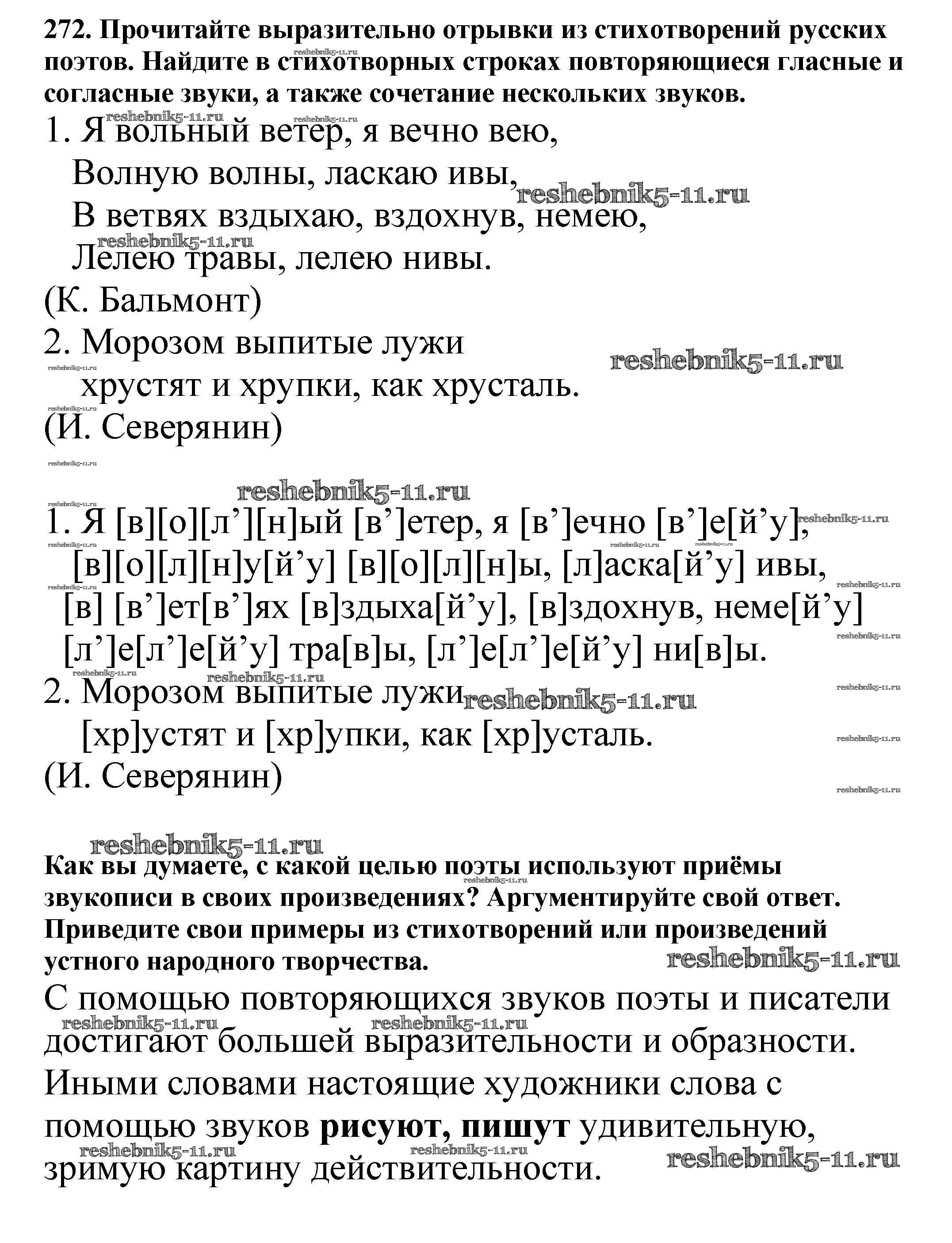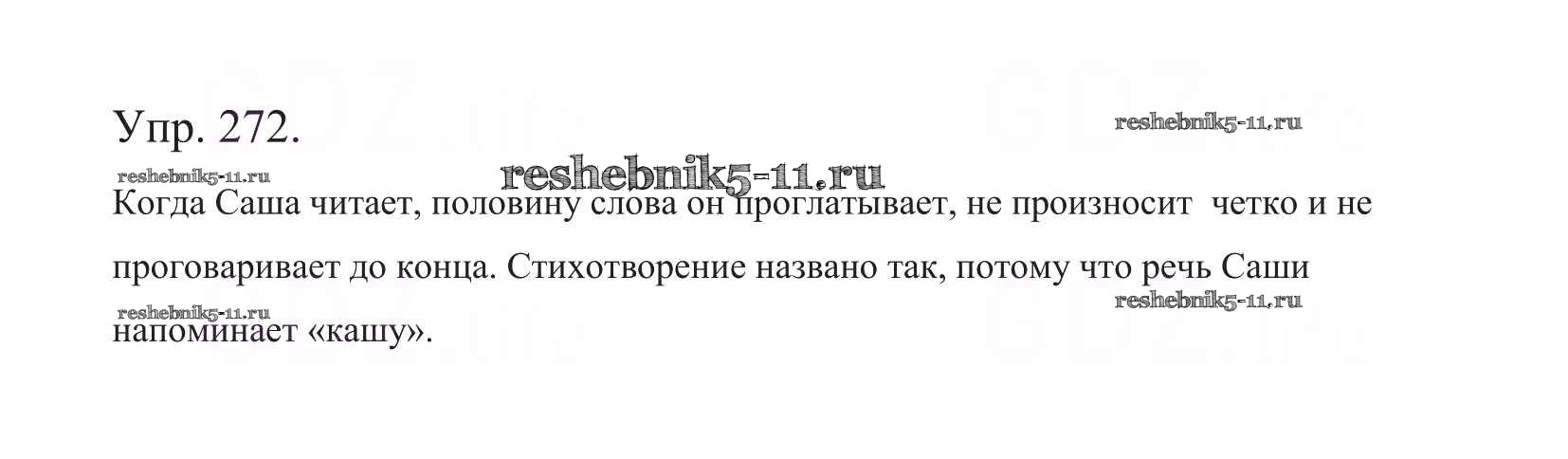 Готовая домашняя работа с ответами по Русскому языку за 5 класс Баранов, Ладыженская, Тростенцова, Кулибаба, Григорян Учебник Часть 1, 2 Просвещение 2016 ФГОС - Часть 1. Упражнения 272