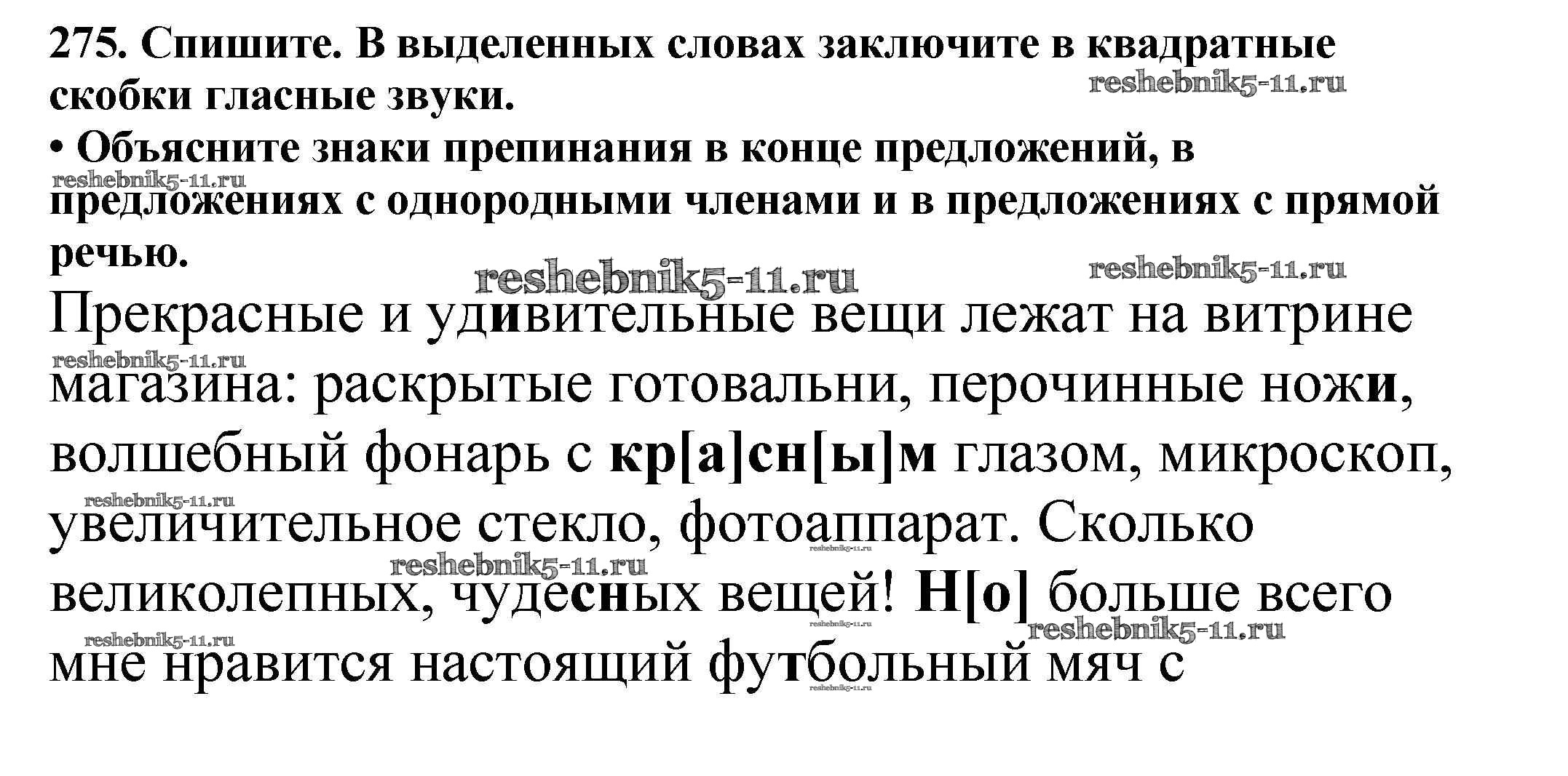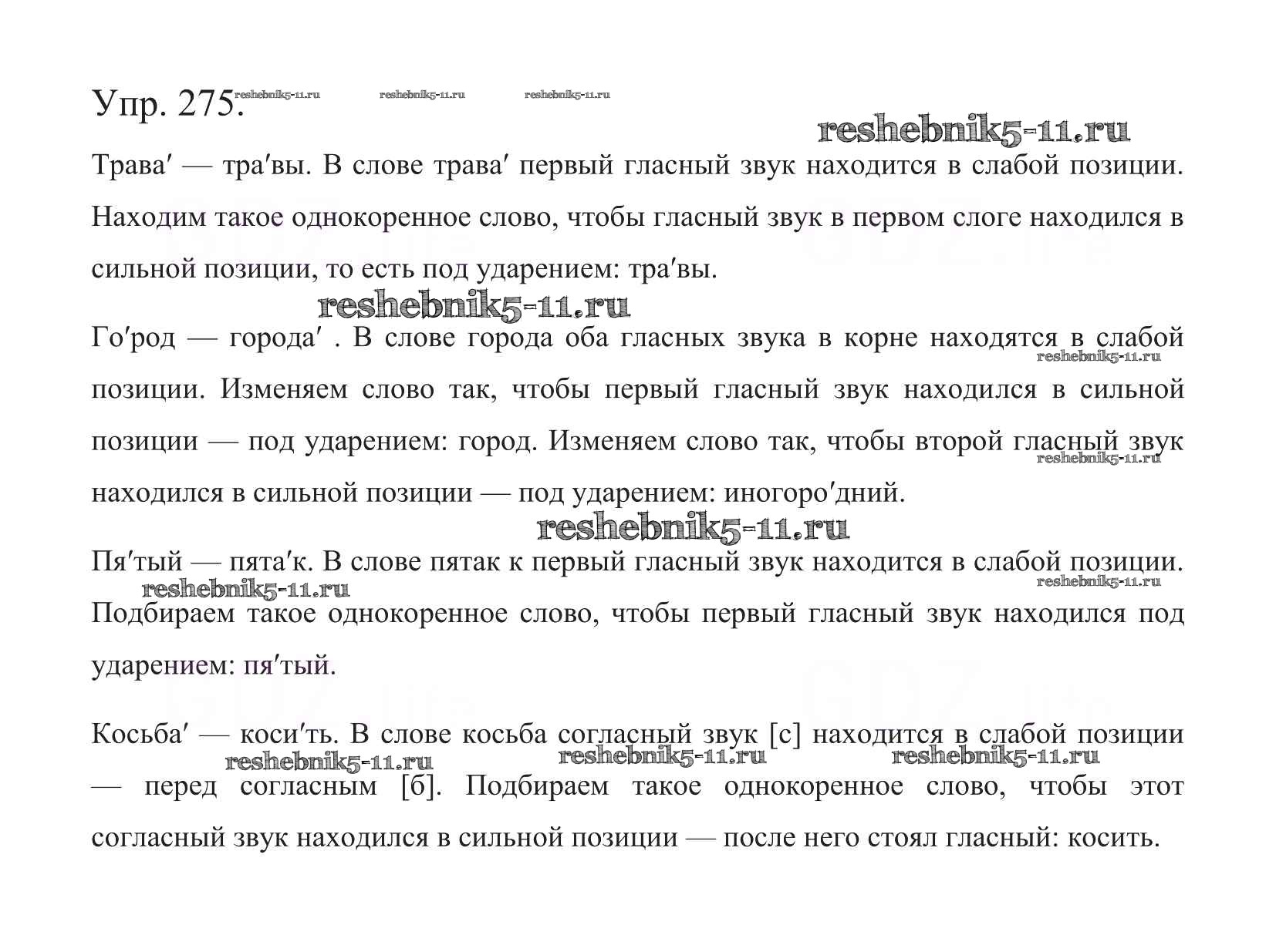 Русский язык за 5 класс Баранов Учебник Просвещение часть 1. упражнение 275