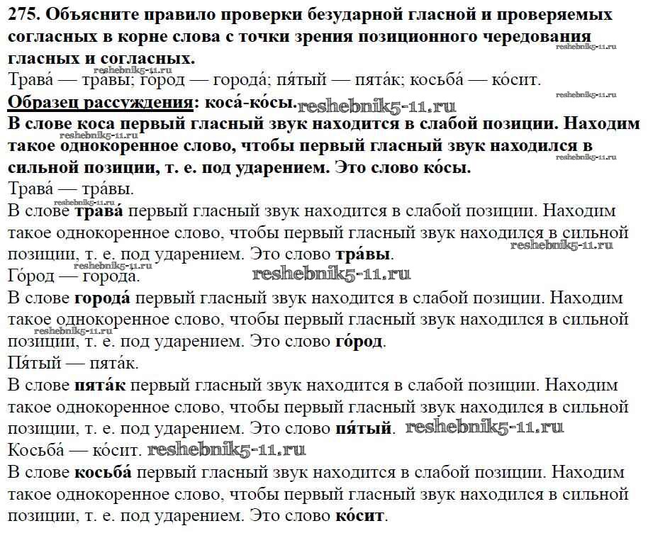 Готовая домашняя работа с ответами по Русскому языку за 5 класс Баранов, Ладыженская, Тростенцова, Кулибаба, Григорян Учебник Часть 1, 2 Просвещение 2016 ФГОС - Часть 1. Упражнения 275