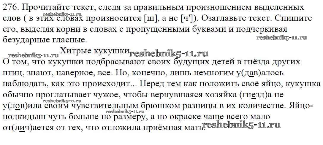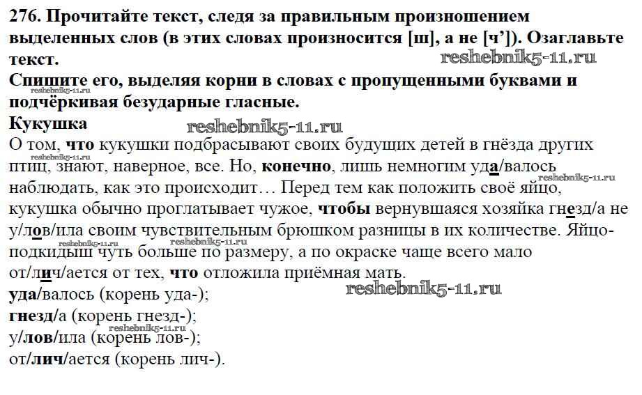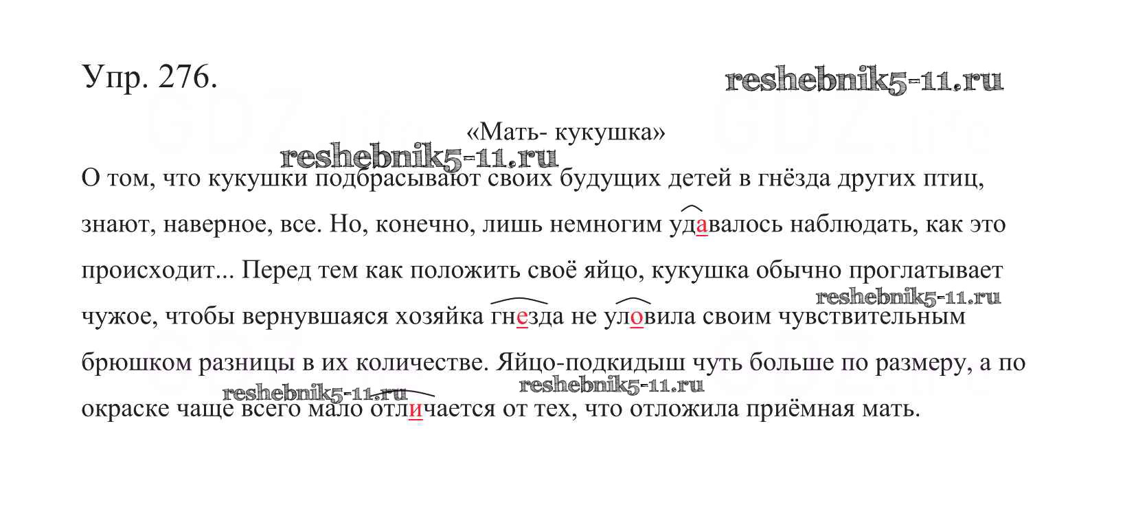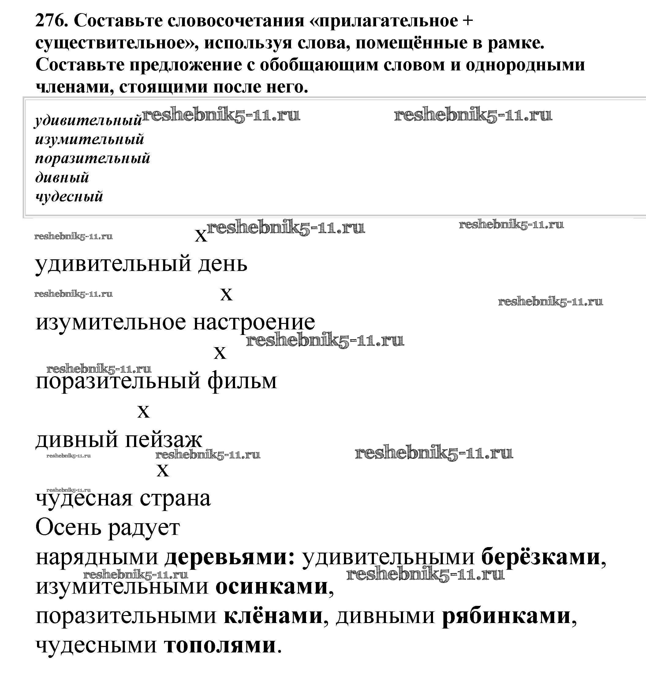 Готовая домашняя работа с ответами по Русскому языку за 5 класс Баранов, Ладыженская, Тростенцова, Кулибаба, Григорян Учебник Часть 1, 2 Просвещение 2016 ФГОС - Часть 1. Упражнения 276