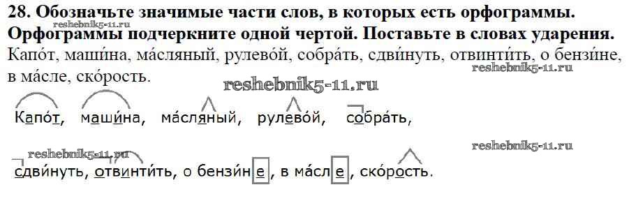 Готовая домашняя работа с ответами по Русскому языку за 5 класс Баранов, Ладыженская, Тростенцова, Кулибаба, Григорян Учебник Часть 1, 2 Просвещение 2016 ФГОС - Часть 1. Упражнения 28
