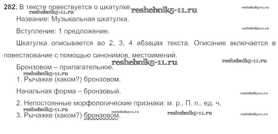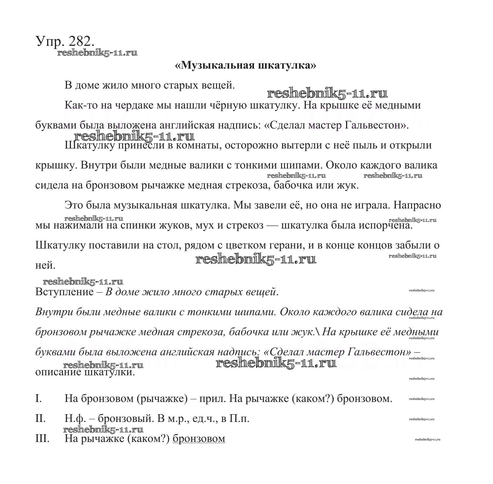 Готовая домашняя работа с ответами по Русскому языку за 5 класс Баранов, Ладыженская, Тростенцова, Кулибаба, Григорян Учебник Часть 1, 2 Просвещение 2016 ФГОС - Часть 1. Упражнения 282