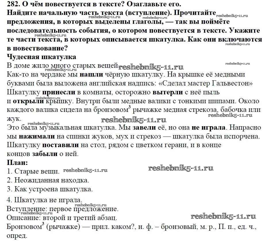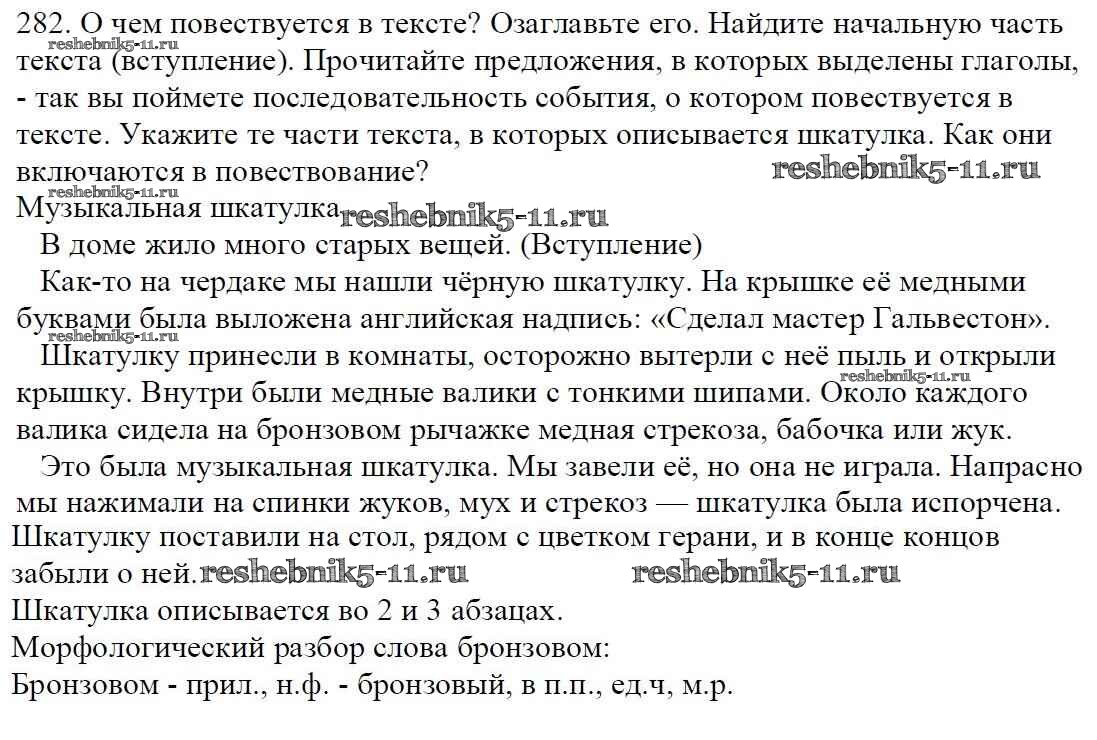Русский язык за 5 класс Баранов Учебник Просвещение часть 1. упражнение 282