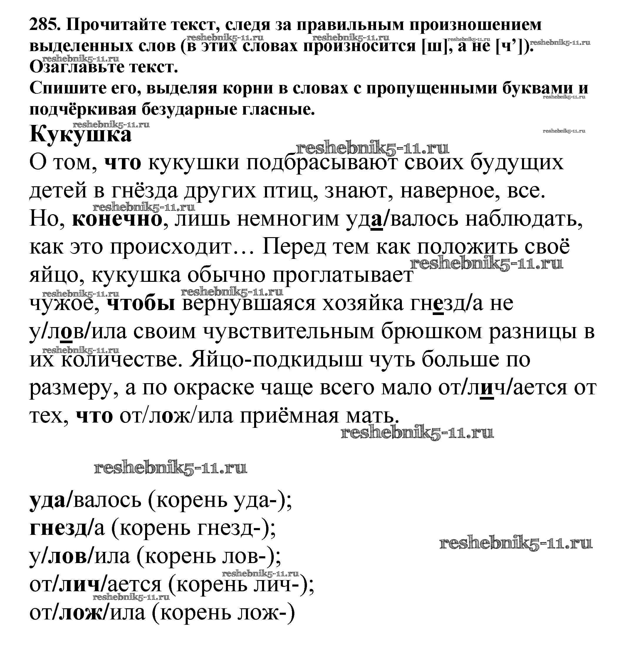 Русский язык за 5 класс Баранов Учебник Просвещение часть 1. упражнение 285