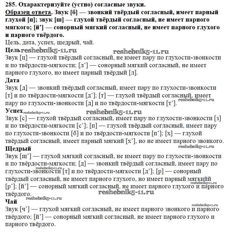 Готовая домашняя работа с ответами по Русскому языку за 5 класс Баранов, Ладыженская, Тростенцова, Кулибаба, Григорян Учебник Часть 1, 2 Просвещение 2016 ФГОС - Часть 1. Упражнения 285